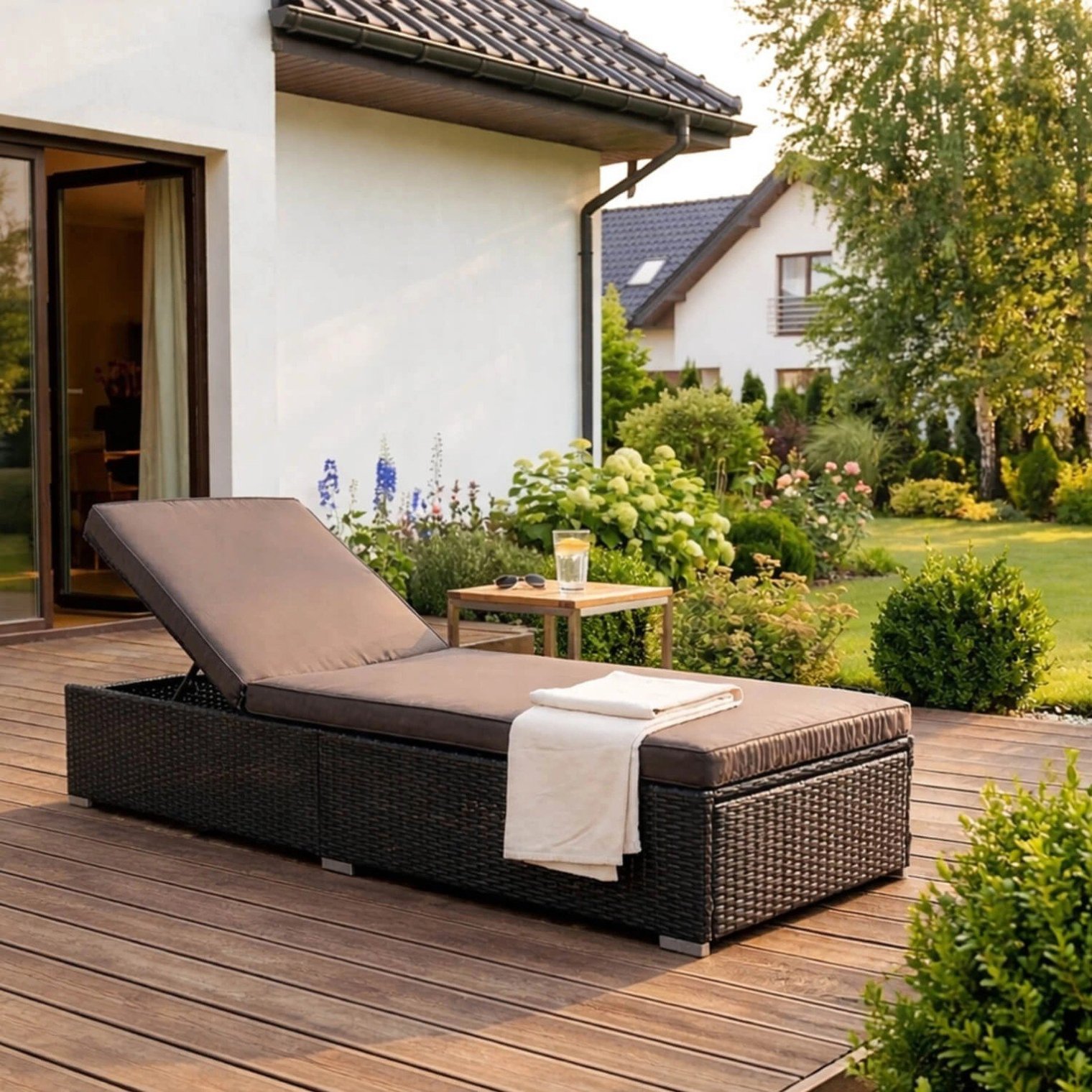 - Многопозиционная регулировка спинки – позволяет легко настроить положение для принятия солнечных ванн, чтения или отдыха;
