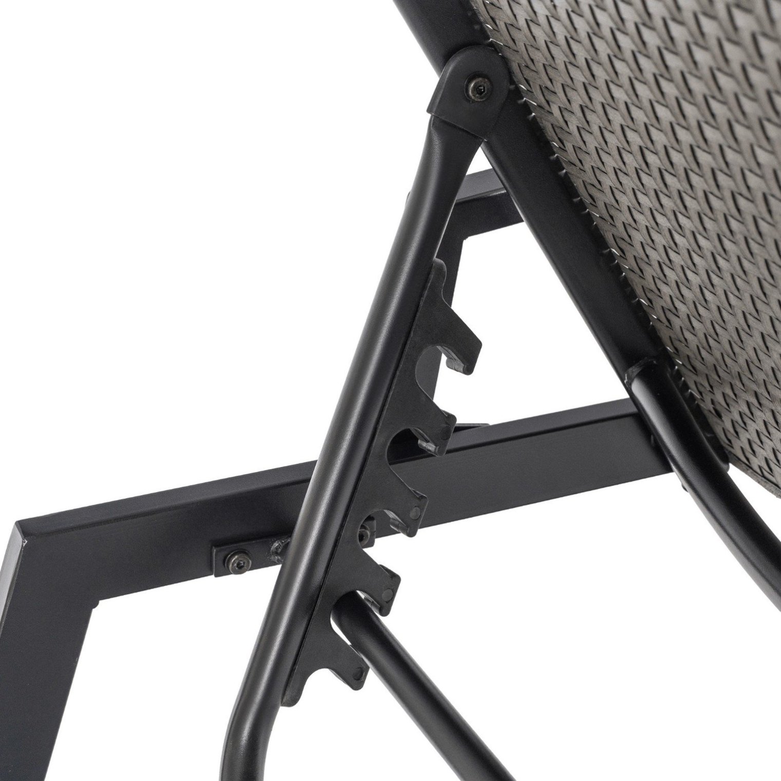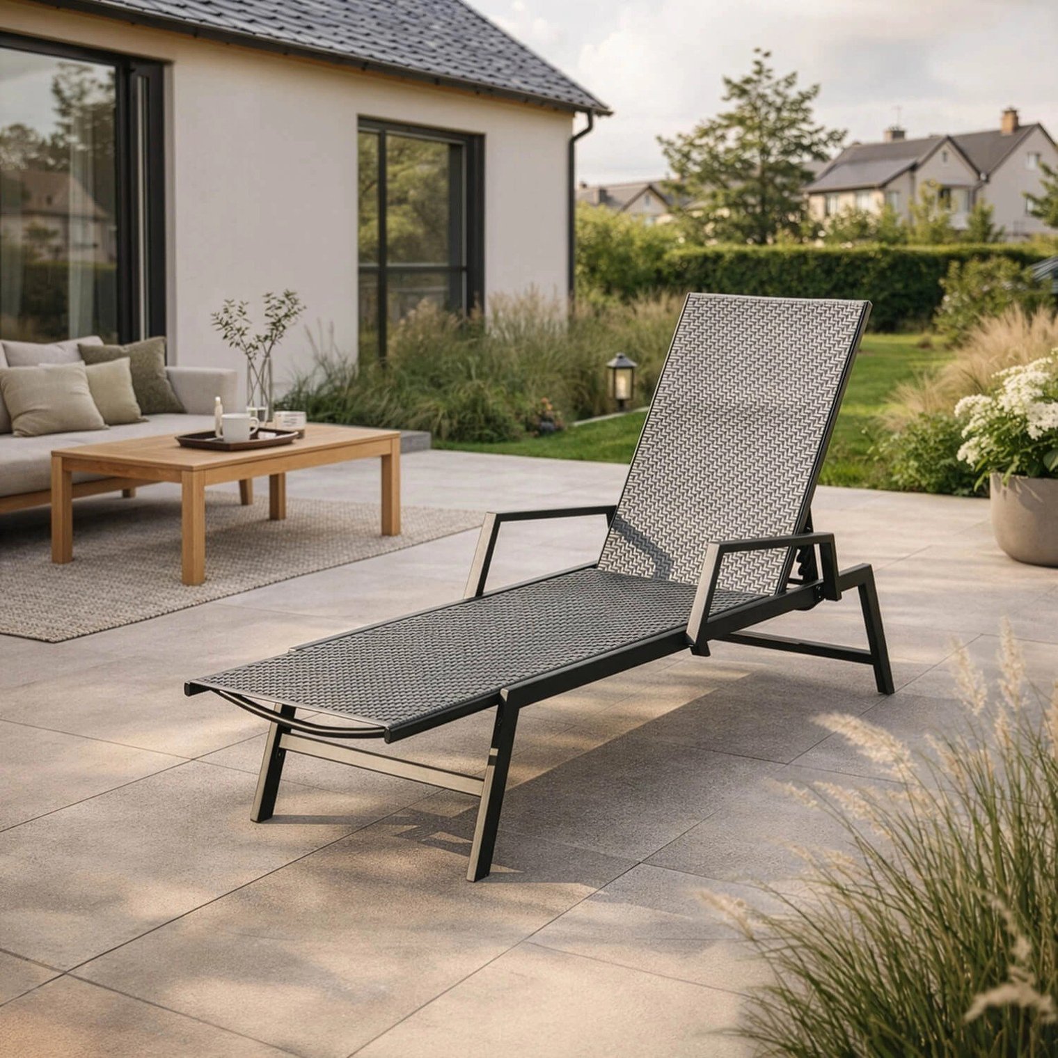 - Регулируемая спинка — позволяет регулировать положение шезлонга от полусидячего до полностью откинутого, что облегчает настройку для принятия солнечных ванн, чтения или моментов отдыха.