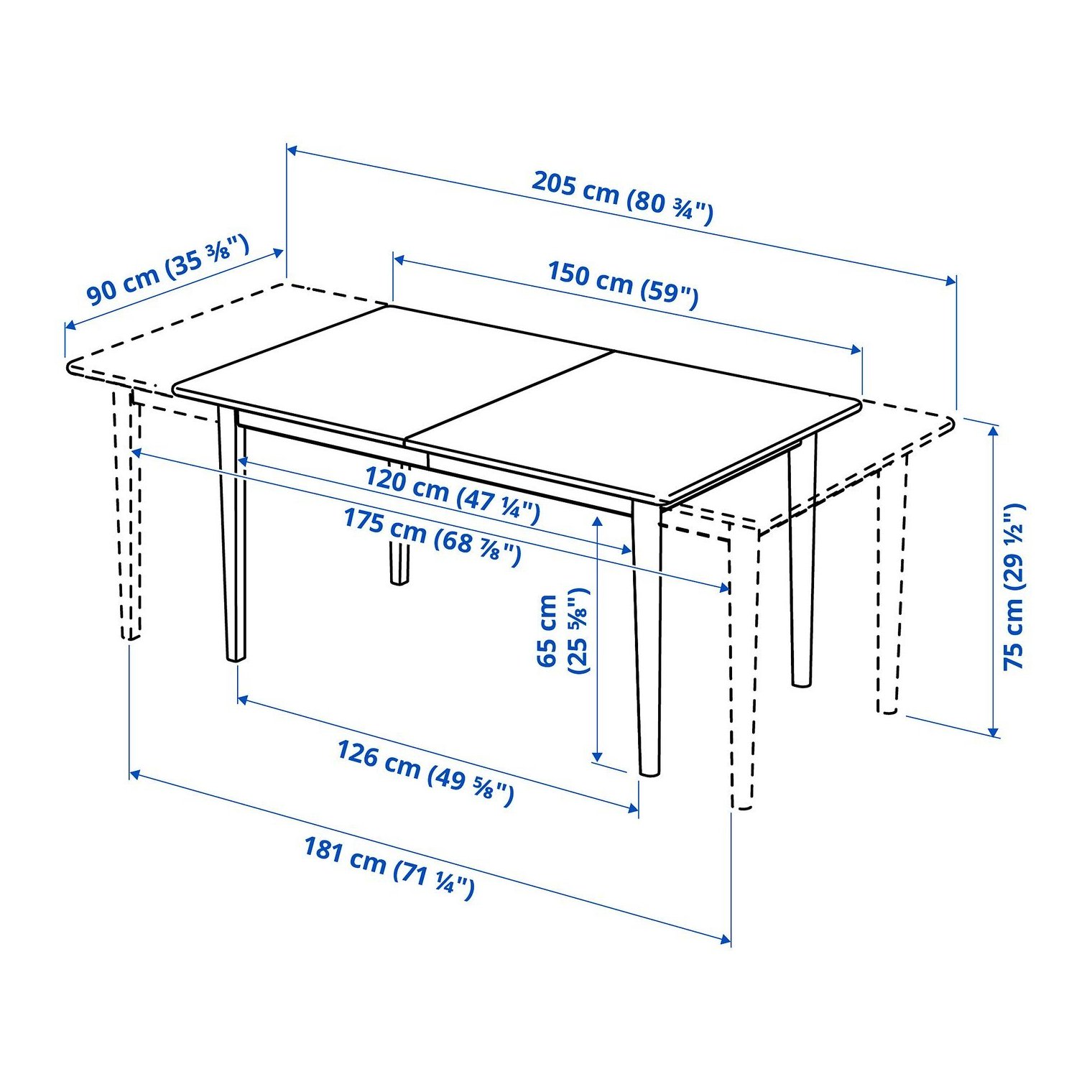 Максимальная длина стола: 205 см.