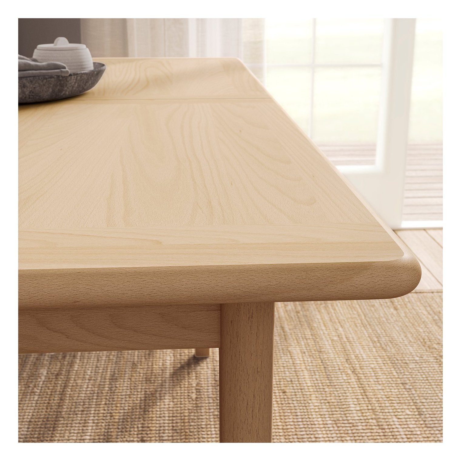 Послойно тонирован в светлый цвет и покрыт прозрачным лаком для защиты и износостойкости. Столешница изготовлена из очень толстого шпона, поэтому вам не придется беспокоиться о пятнах и повреждениях во время совместной трапезы.