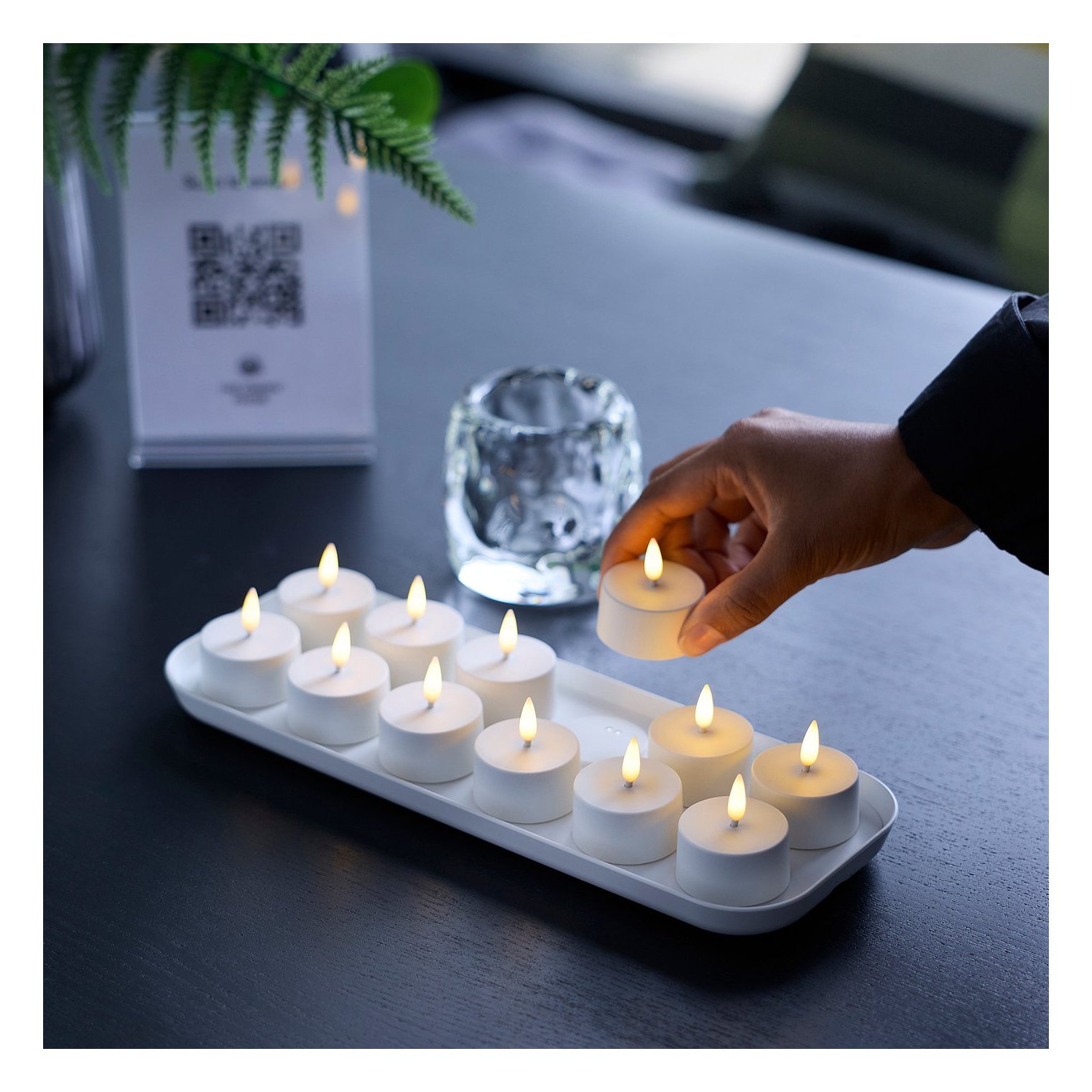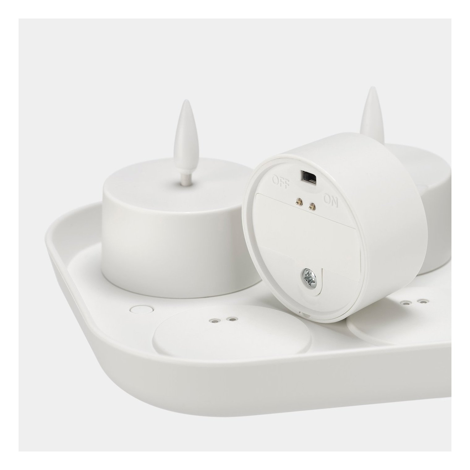 Светодиодные чайные свечи также поставляются с декоративным зарядным лотком с кабелем USB-A–USB-C, который облегчает зарядку аккумуляторов.