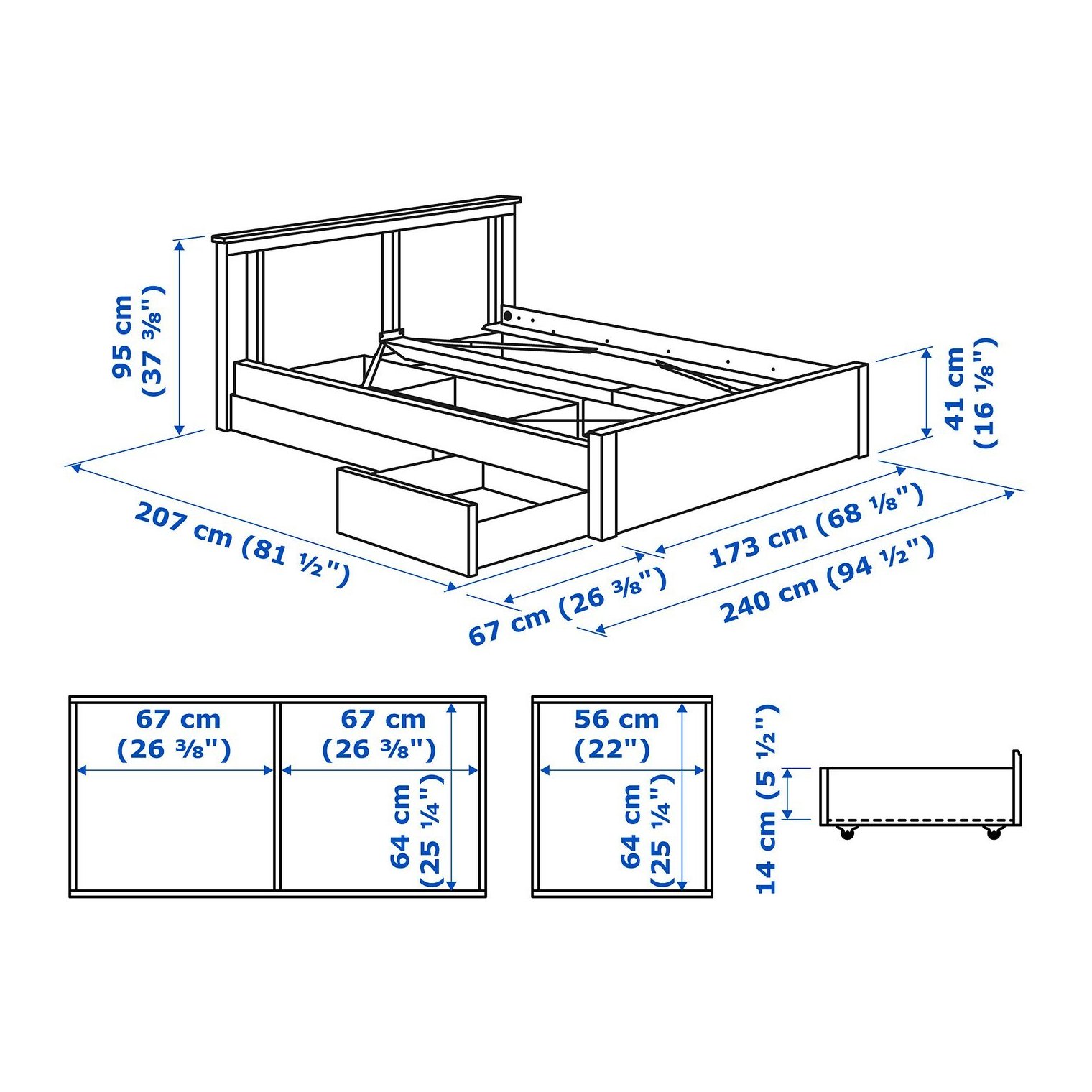 Вместительное хранилище – незаметно спрятано под кроватью в двух больших ящиках. Идеально подходит для хранения одеял, подушек и постельного белья.