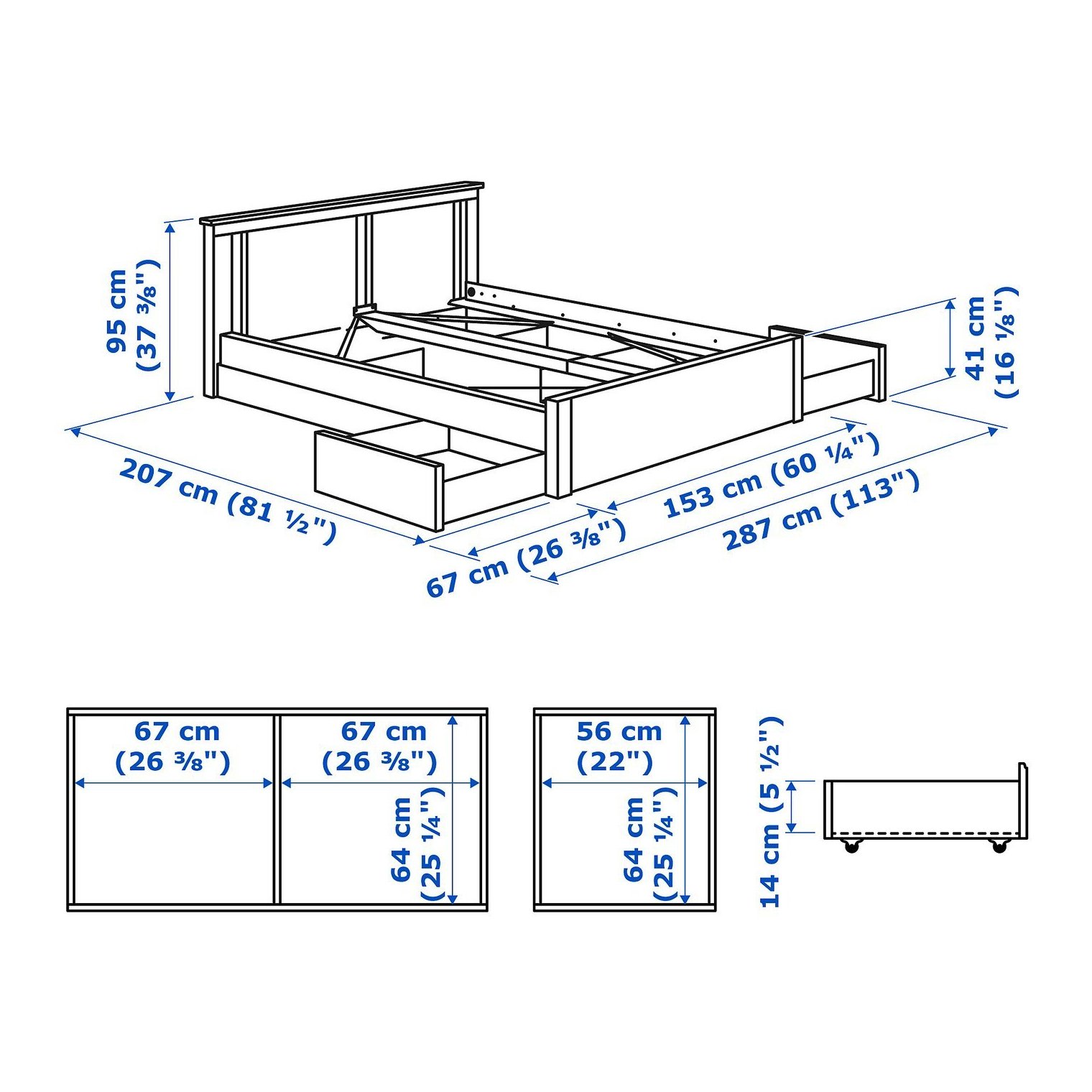 Ящики для хранения постельного белья SONGESAND идеально подходят к каркасу кровати SONGESAND. Они аккуратно размещаются под кроватью, вровень с боками.