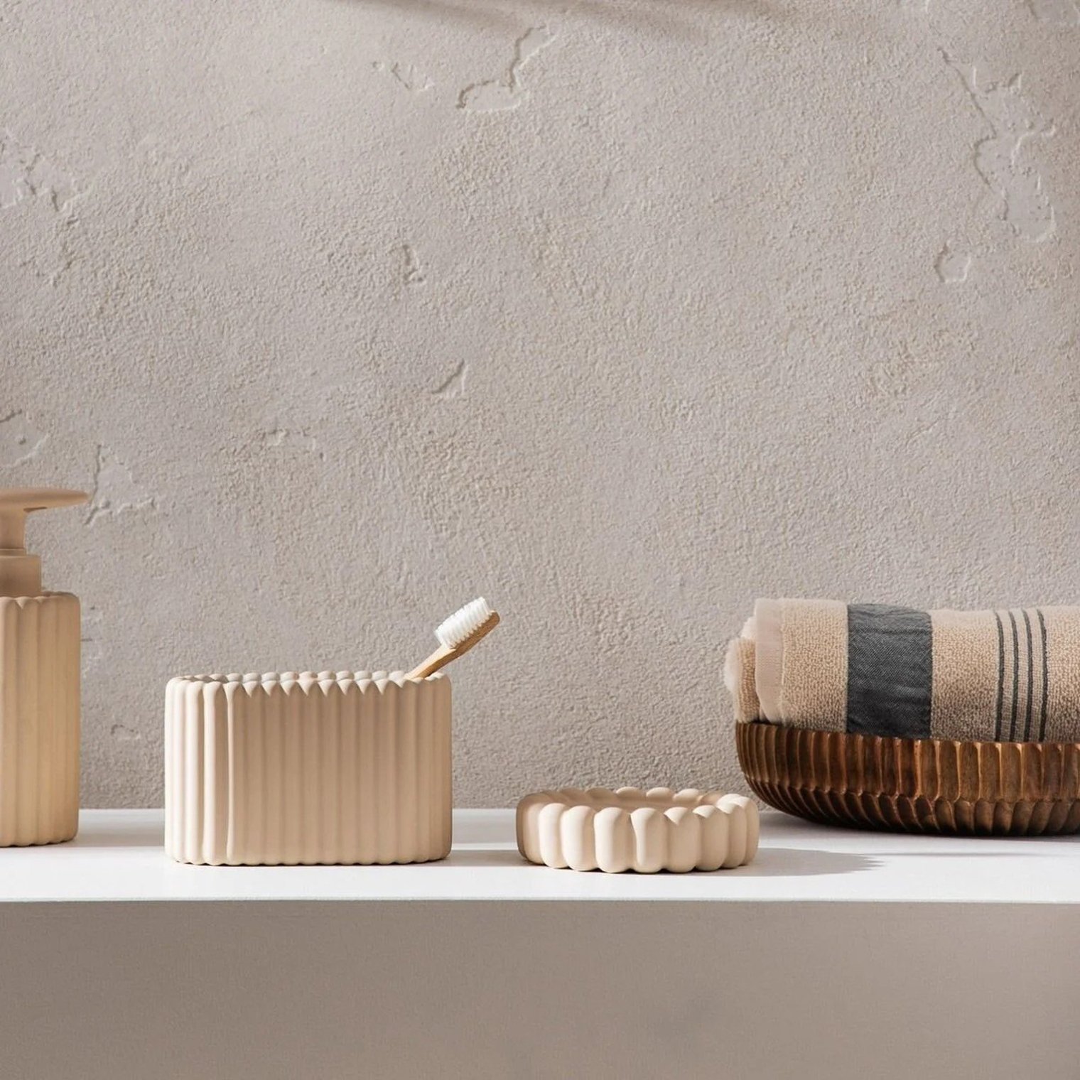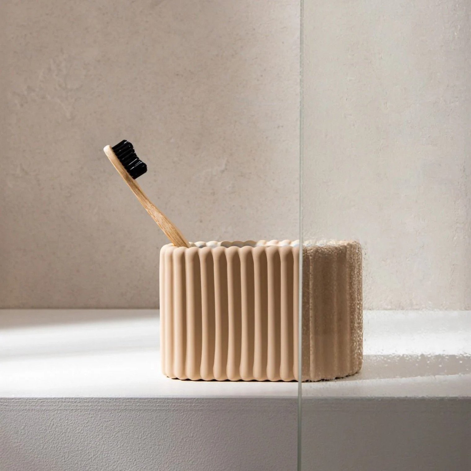 Кружка для ванной SOLVANI — это стильный и функциональный аксессуар для ванной комнаты. Ее минималистичный дизайн с едва заметными бороздками придает ей современный и элегантный вид, идеально дополняя модные, светлые интерьеры.