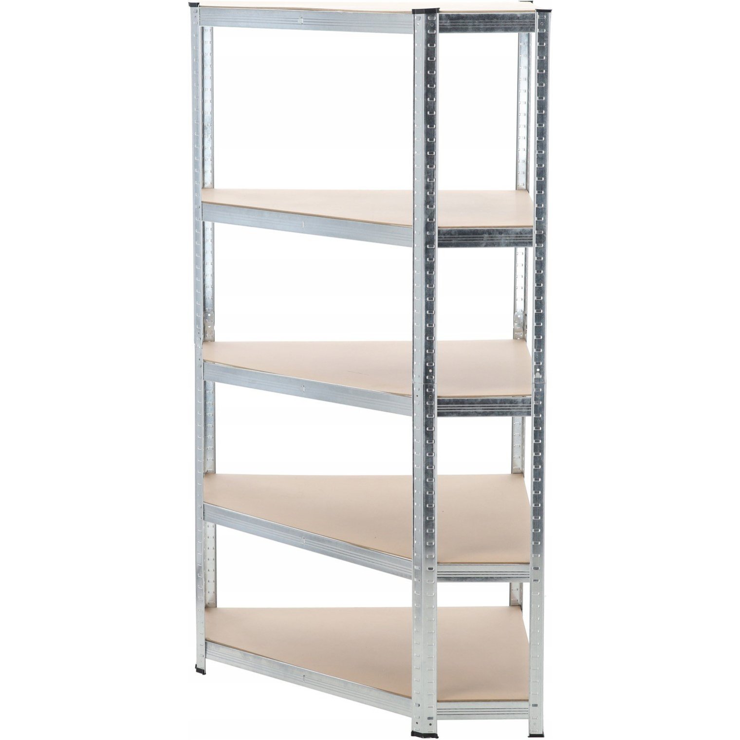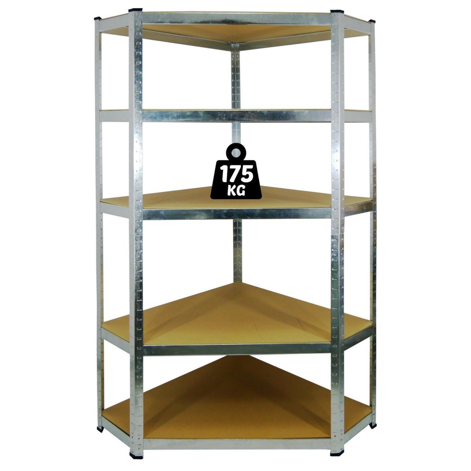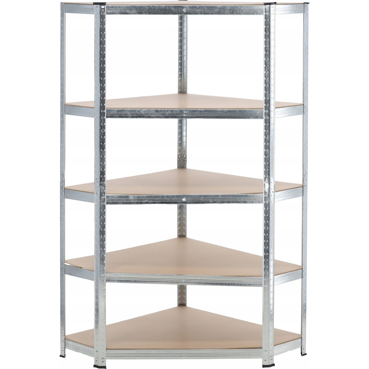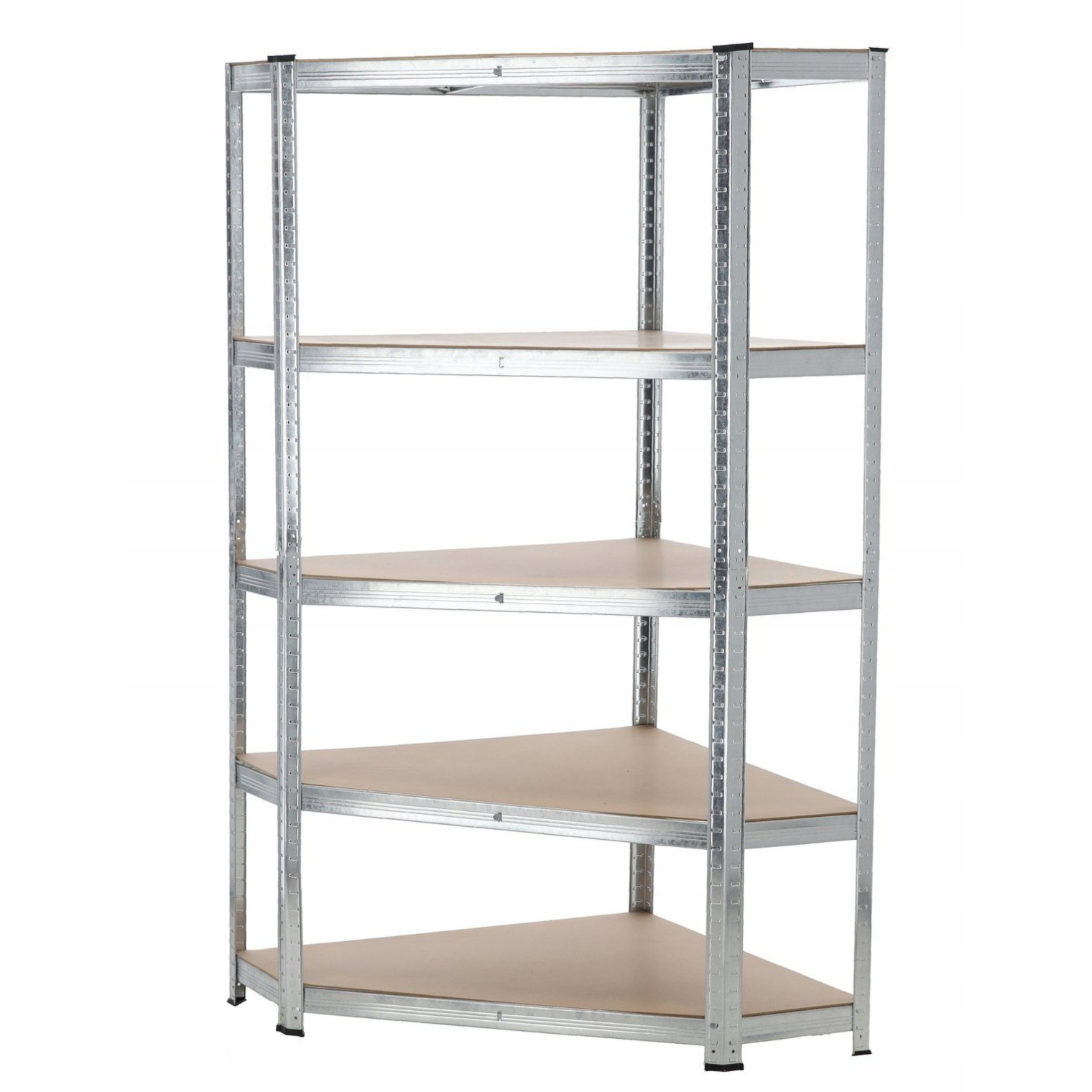Этот пятиярусный угловой стеллаж — практичное решение для использования углового пространства. Изготовленный из оцинкованных металлических профилей и полок из МДФ, он гарантирует прочность и устойчивость. Максимальная грузоподъемность каждой из пяти полок составляет 175 кг (при равномерном распределении нагрузки), а максимальная грузоподъемность всего стеллажа — 875 кг, что делает его прочным и функциональным решением.