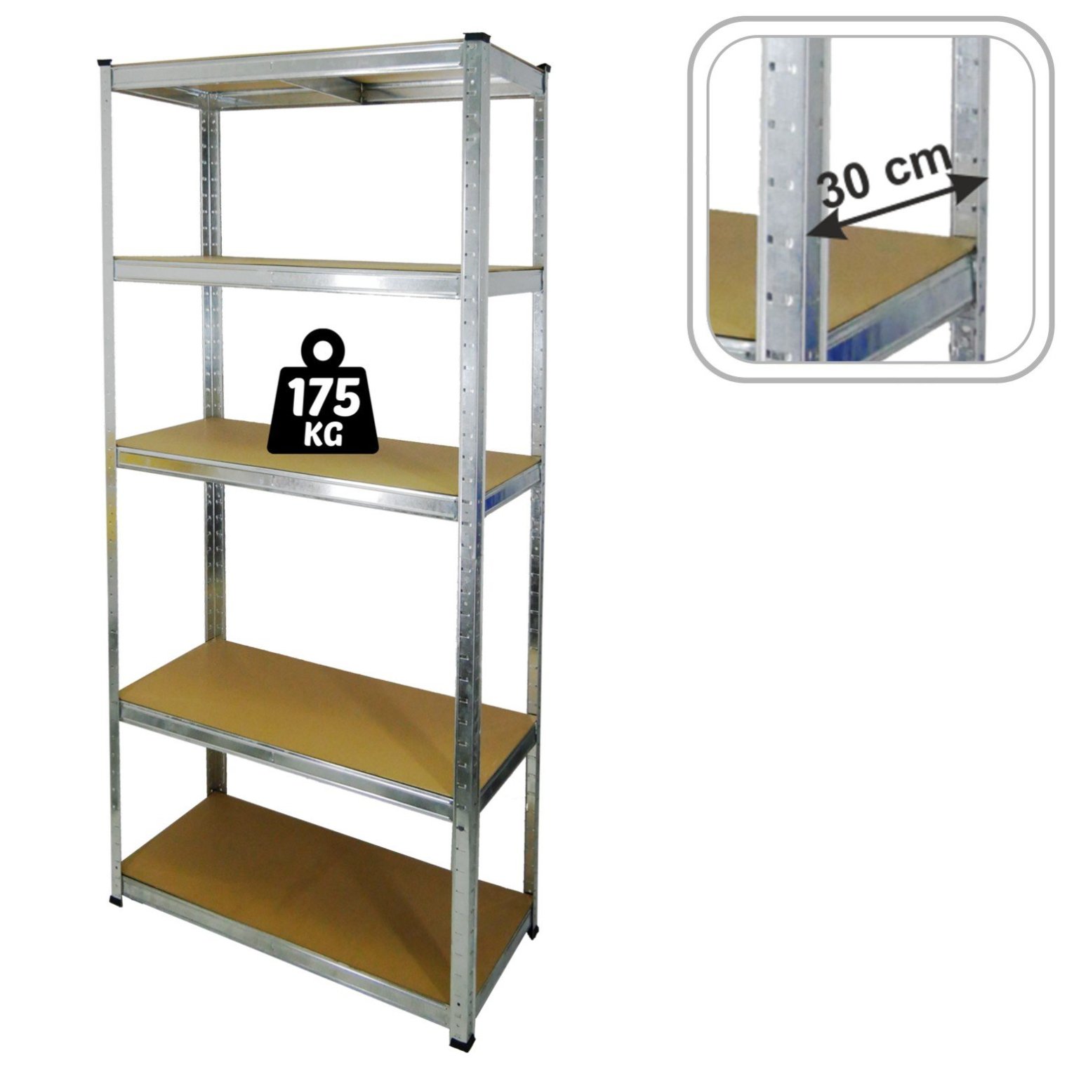 Этот пятиярусный стеллаж — идеальное решение для хранения вещей в любой комнате. Изготовленный из оцинкованных металлических профилей и полок из HDF , он гарантирует стабильность и долговечность. Кронштейны под каждой полкой обеспечивают дополнительное усиление конструкции. Максимальная грузоподъемность 175 кг на полку делает стеллаж функциональным и прочным. Легко собирается, идеально подходит для различных целей.