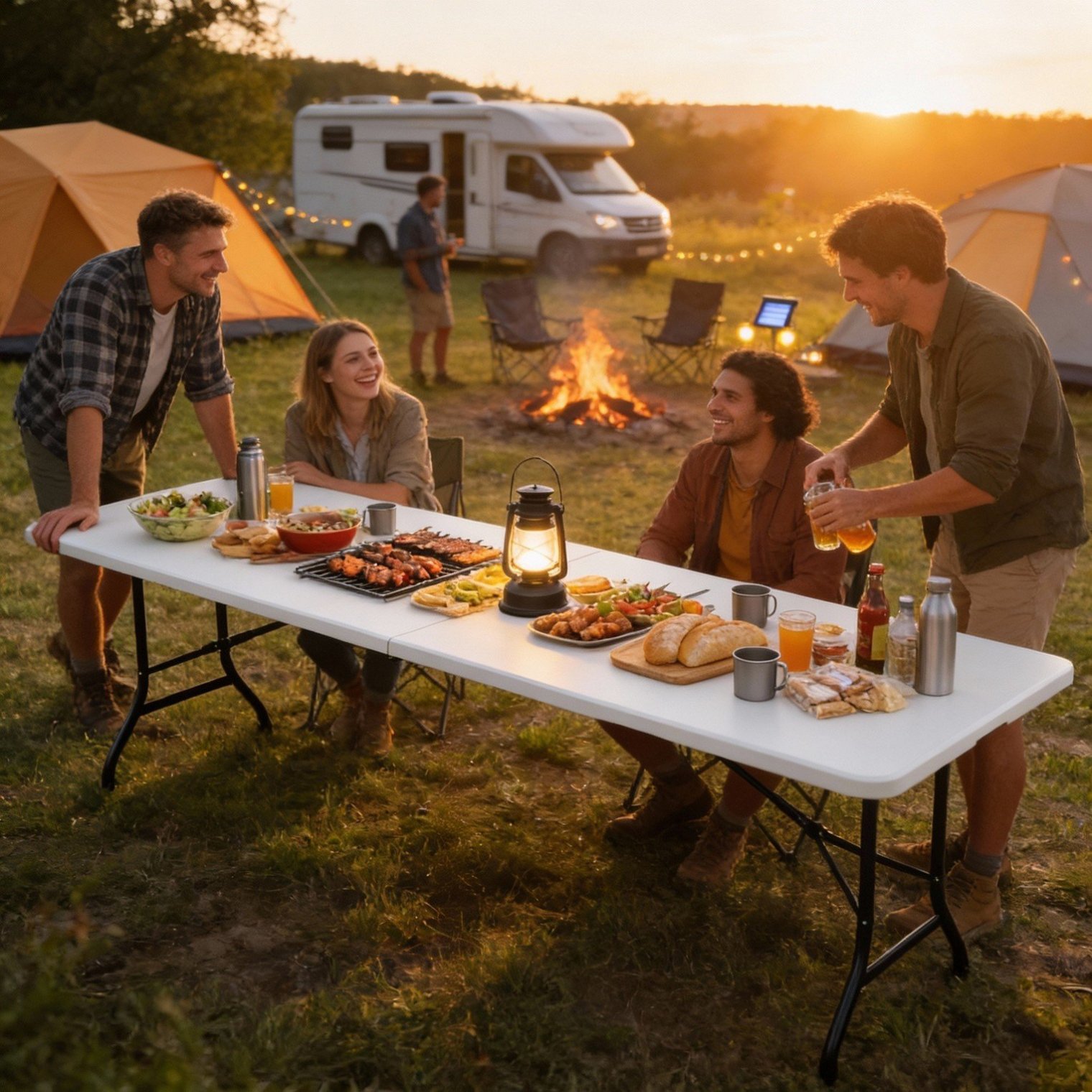Незаменимый на выездных мероприятиях, семейных приёмах и встречах на свежем воздухе — складной туристическо-кейтеринговый стол длиной целых 240 см создаёт пространство, которое вместит всех гостей! Благодаря прочной и в то же время практичной конструкции стол раскладывается за считанные секунды, а его транспортировка и хранение не вызывают хлопот.
