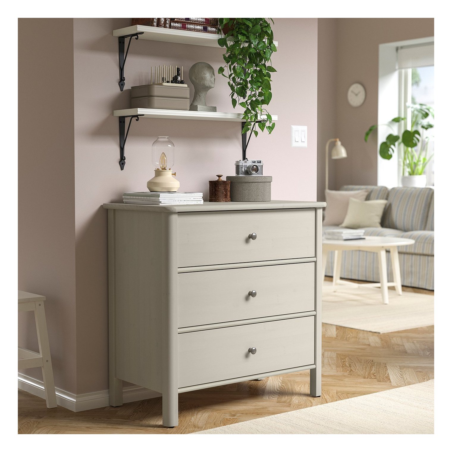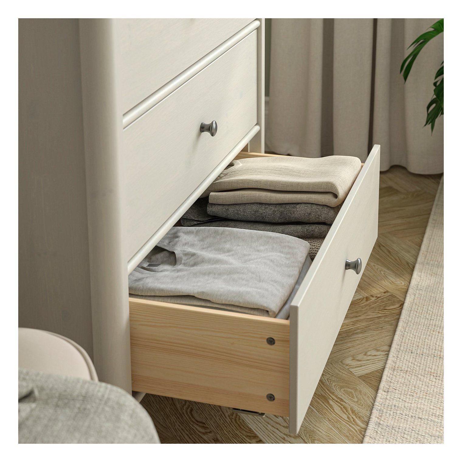 Комод STOREMOLLA создан для долговечной эксплуатации. Ящики изготовлены из прочной массивной сосны и оснащены скрытыми направляющими со встроенным механизмом плавного закрывания.