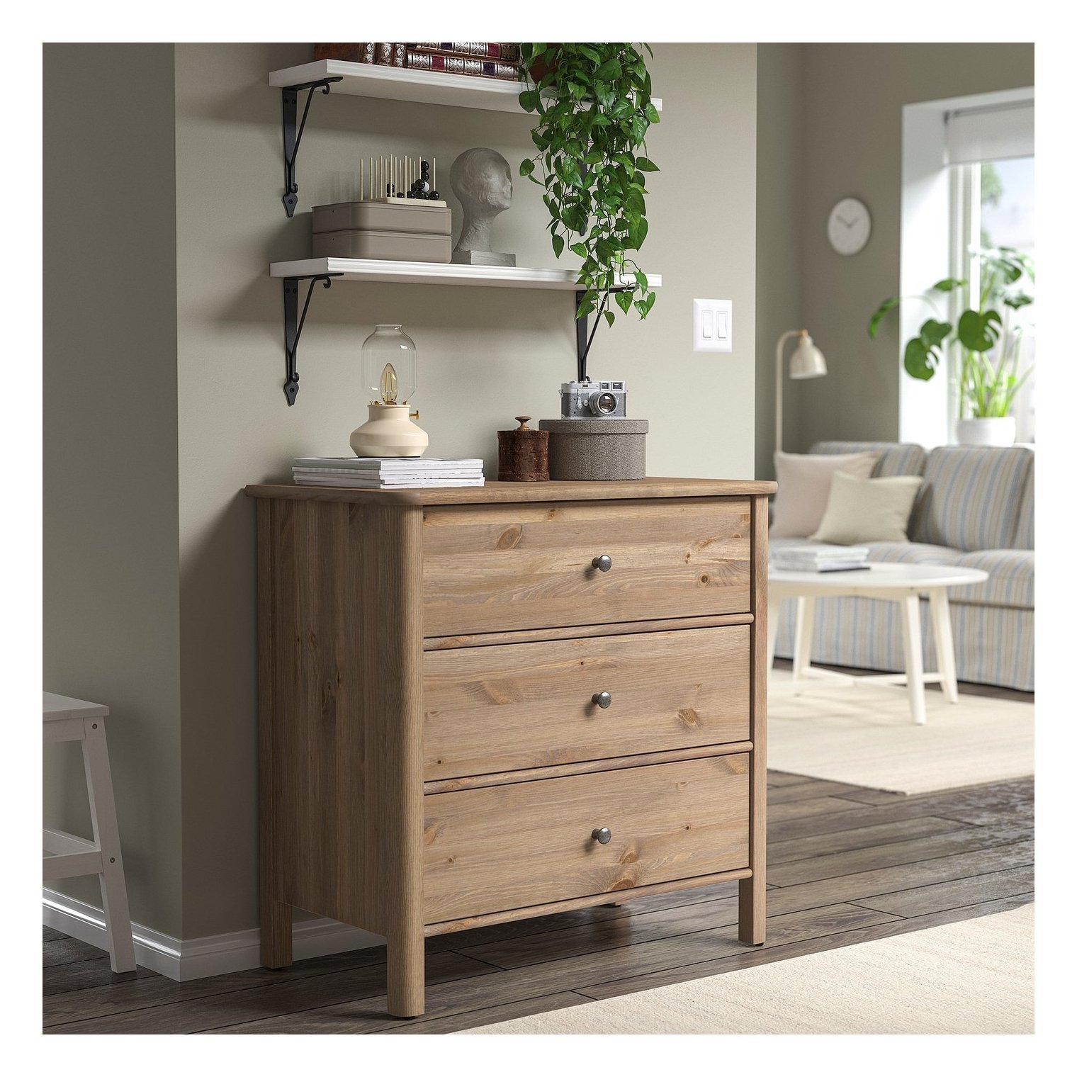 Комод STOREMOLLA рассчитан на долгий срок службы. Ящики изготовлены из прочной массива сосны и оснащены скрытыми направляющими со встроенным механизмом плавного закрывания.
