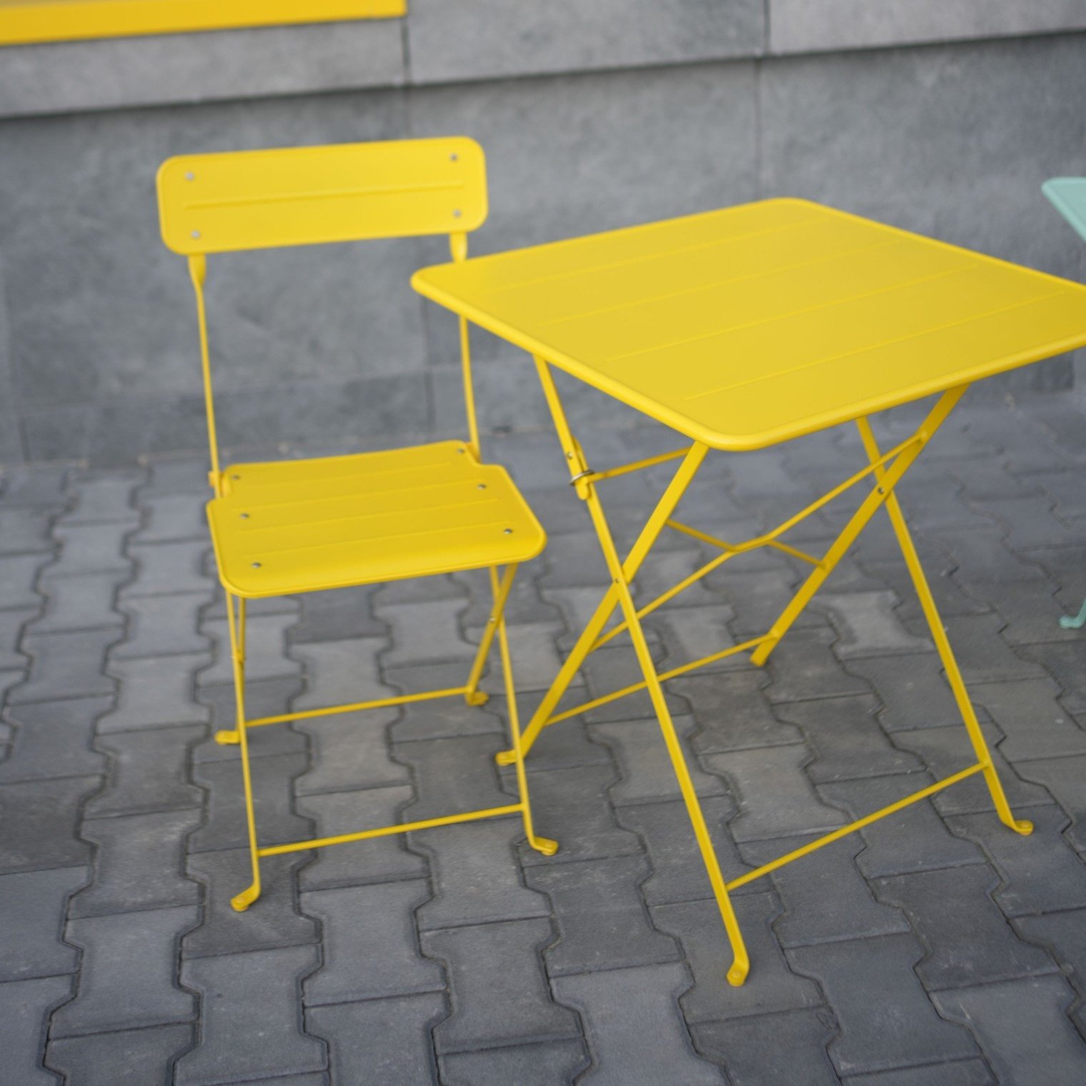 Стол и стул долговечны и не требуют трудоемкого ухода, поскольку изготовлены из стали с порошковым покрытием.