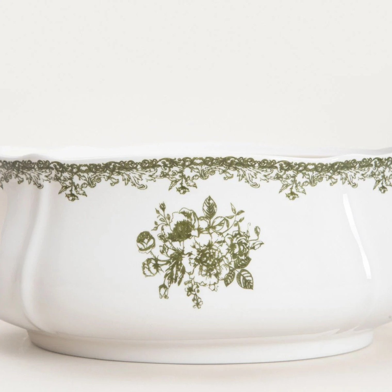 Супермиска LOURRY объемом 3 литра станет элегантным дополнением к классической посуде. Изготовленная из белого фарфора и украшенная нежным зеленым цветочным орнаментом, она очаровывает своим вневременным стилем, вдохновленным традиционной керамикой. Изящные украшения в виде декоративной каймы и цветочного мотива подчеркивают ее неповторимый характер.