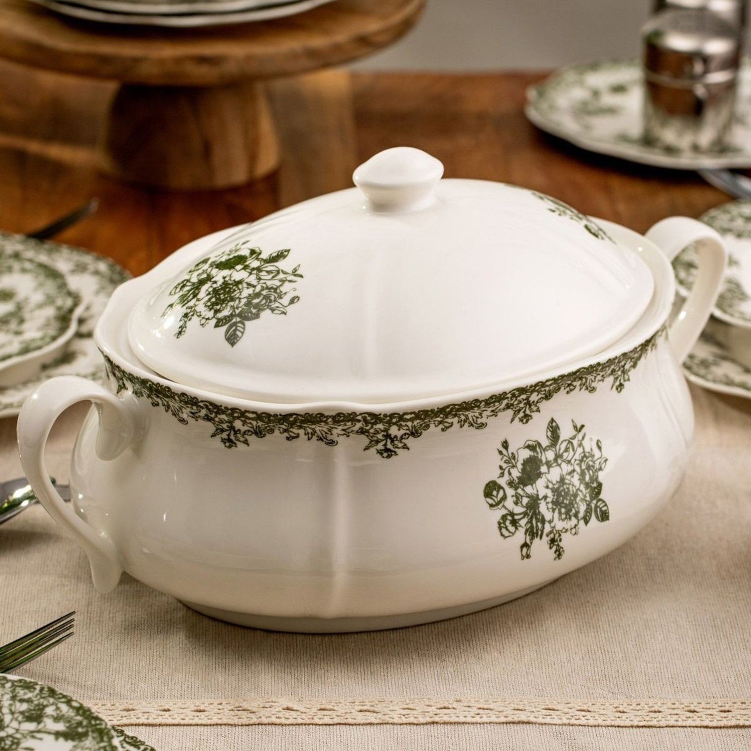 Зеленая супница объемом 3 литра.