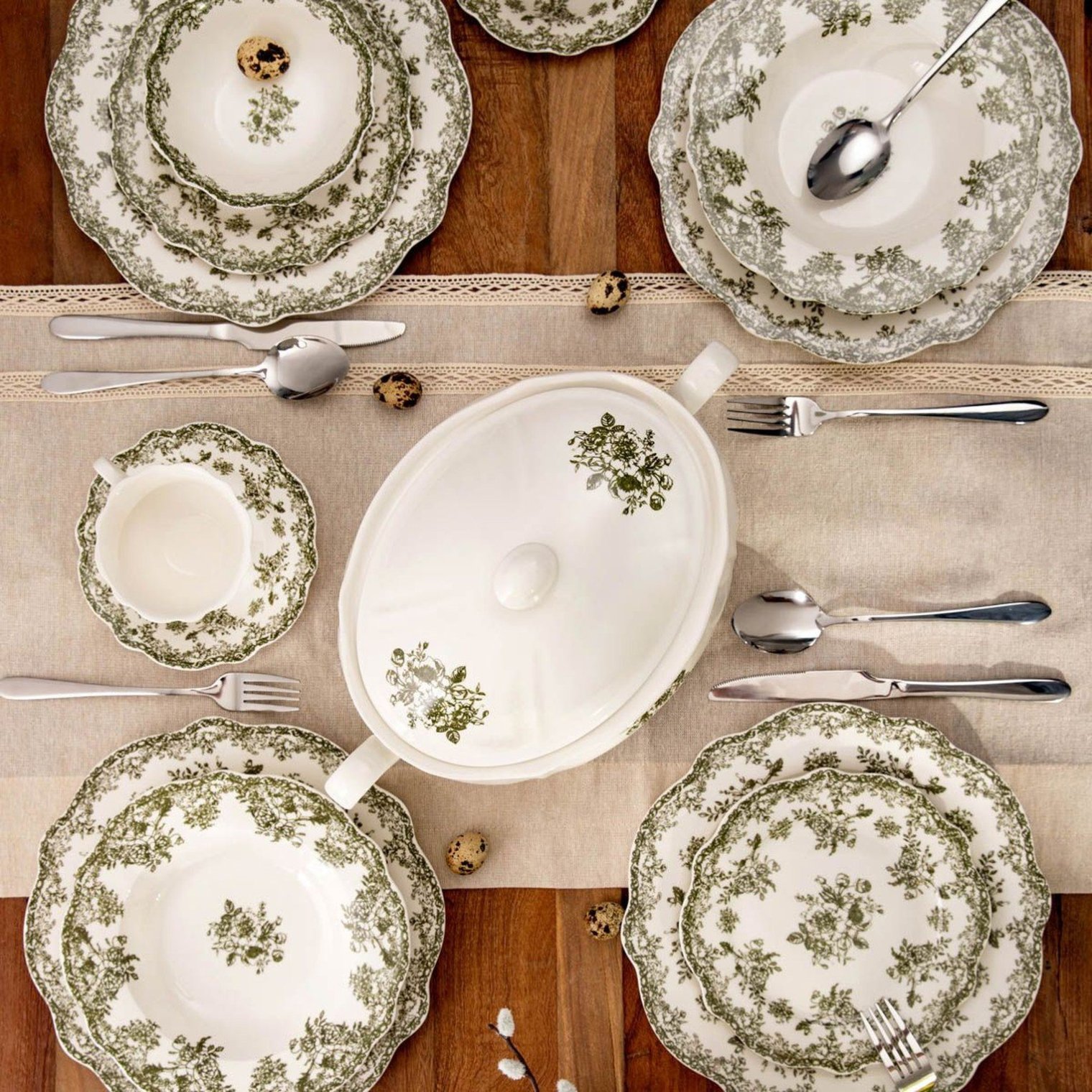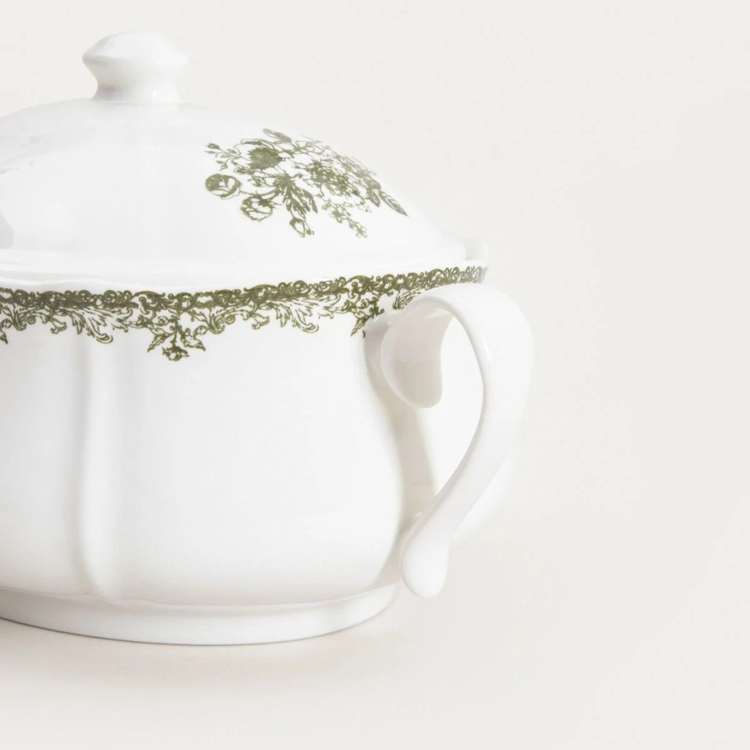- Универсальный белый оттенок с зеленым цветочным орнаментом