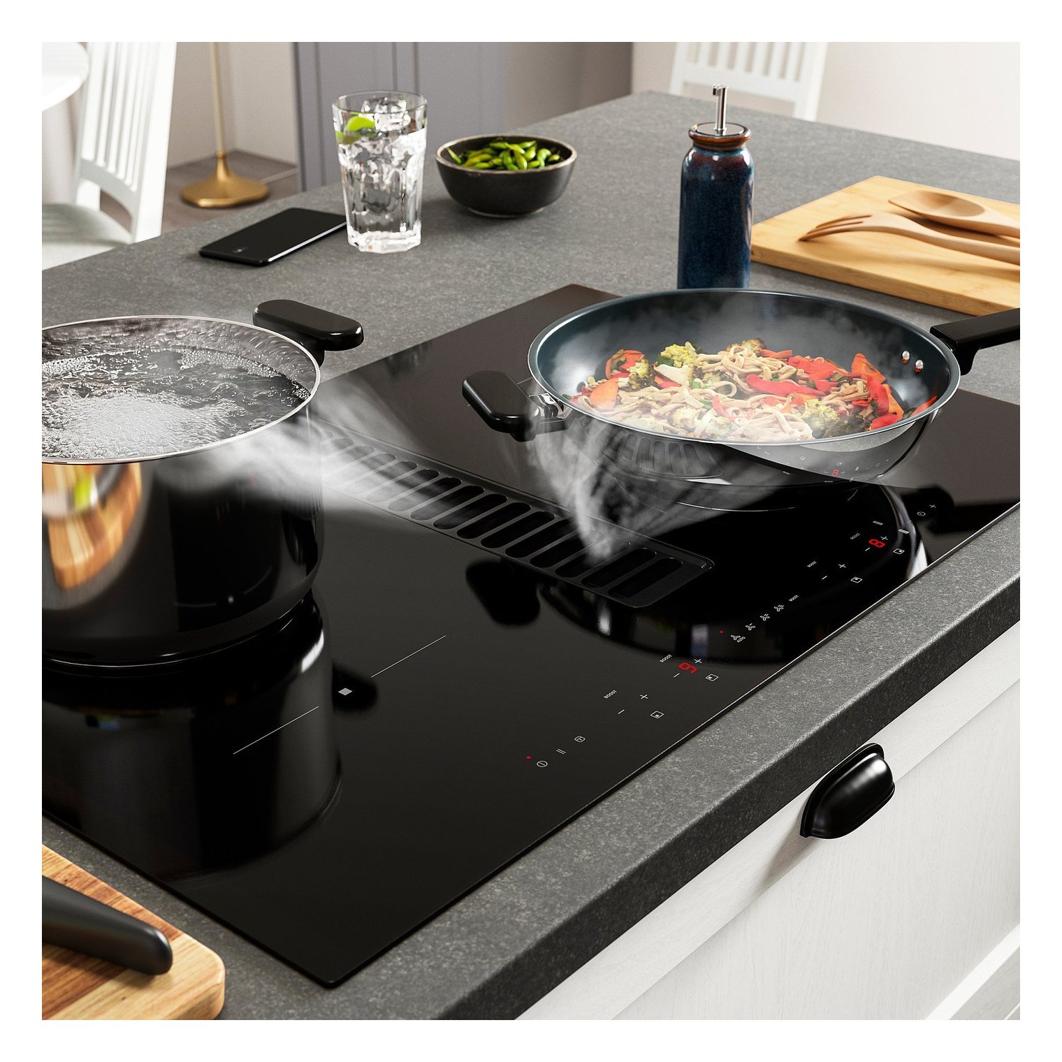 Индукционные варочные панели отличаются исключительной энергоэффективностью и позволяют готовить быстро и точно, поскольку индукционная технология передает энергию непосредственно на магнитную посуду.