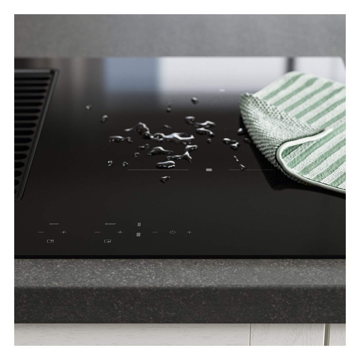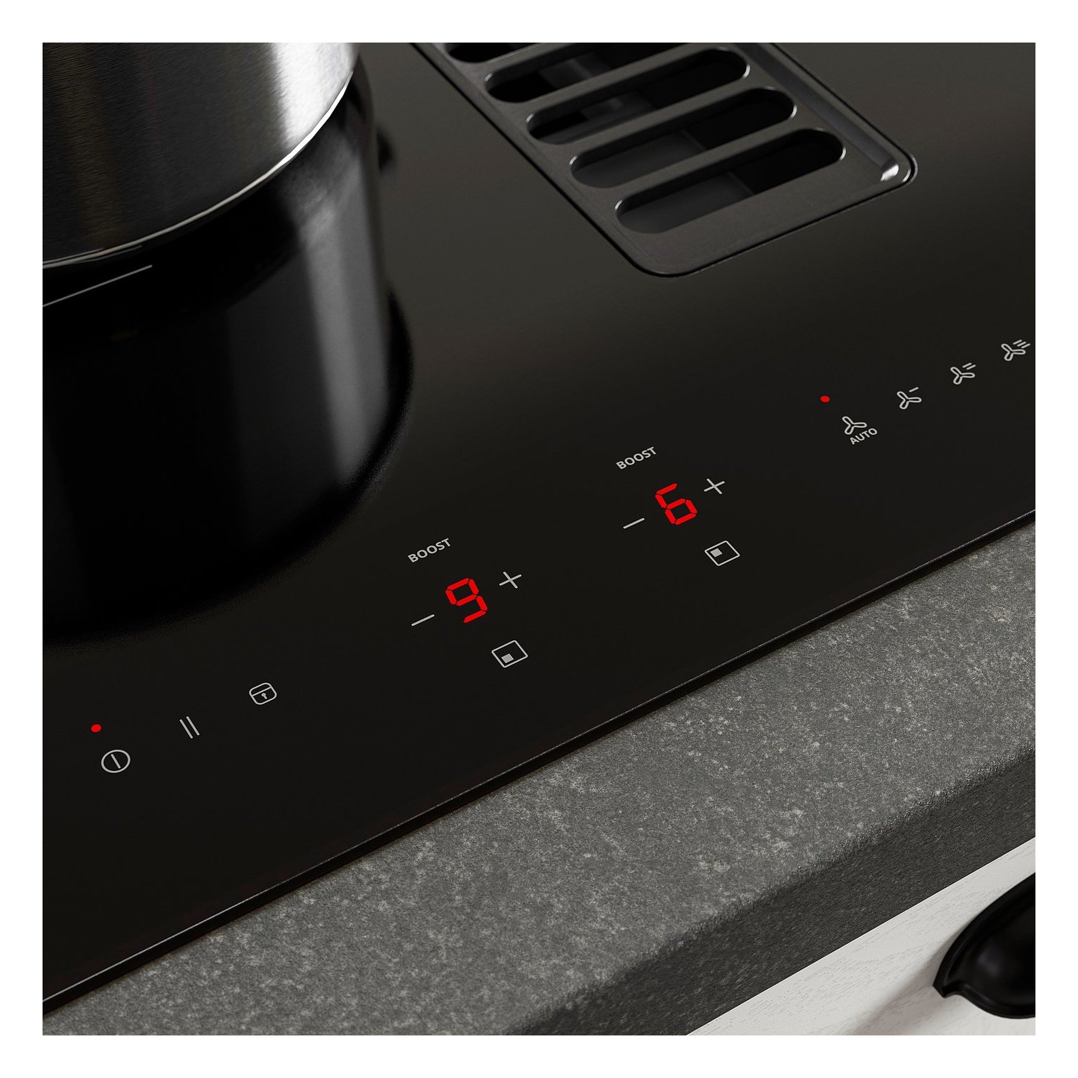 Индукционные зоны передают тепло непосредственно на дно кастрюли и быстро остывают после снятия кастрюли. Это обеспечивает более точный контроль температуры во время приготовления пищи, а также предотвращает пригорание сковороды и поверхности плиты.