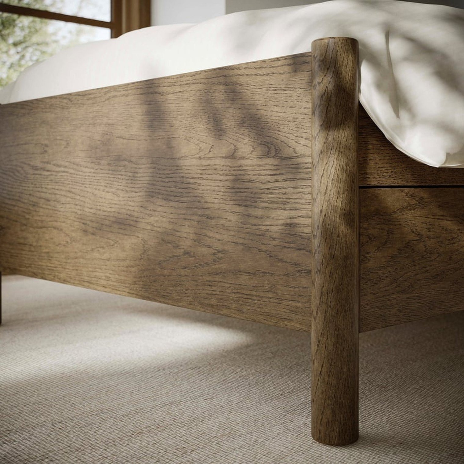 Каркас кровати со специальным местом для прикроватной тумбочки означает, что ящики всегда легкодоступны.