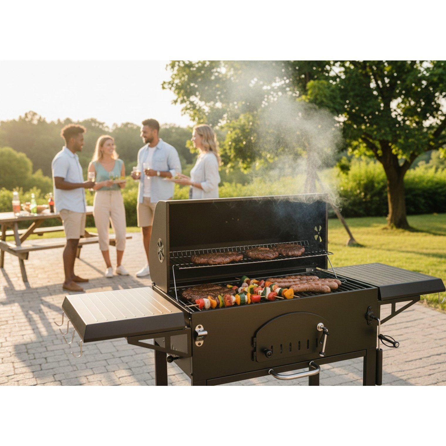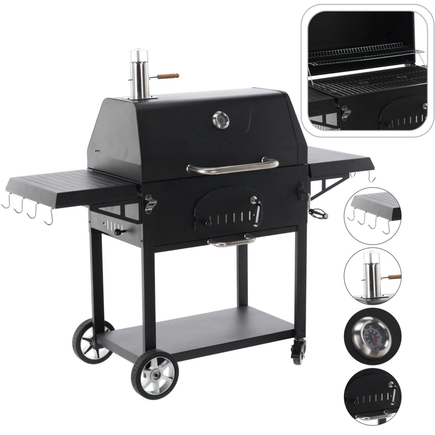 Классический угольный гриль для любителей настоящего вкуса — идеален для сада, дачи или летнего гриля с семьёй. Благодаря прочной крышке и чугунной решётке каждое блюдо получается как из профессиональной кухни на открытом воздухе!