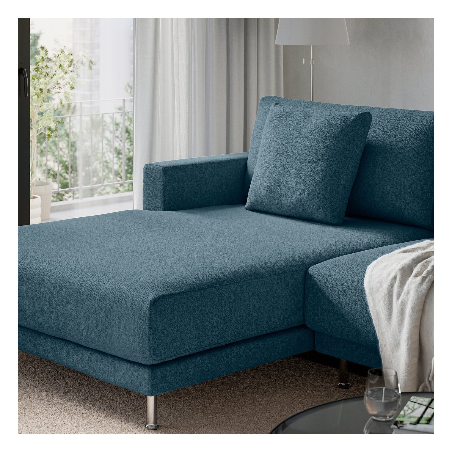 Ножки дивана оставляют пространство под ним, придавая ему воздушный вид и облегчая уборку.