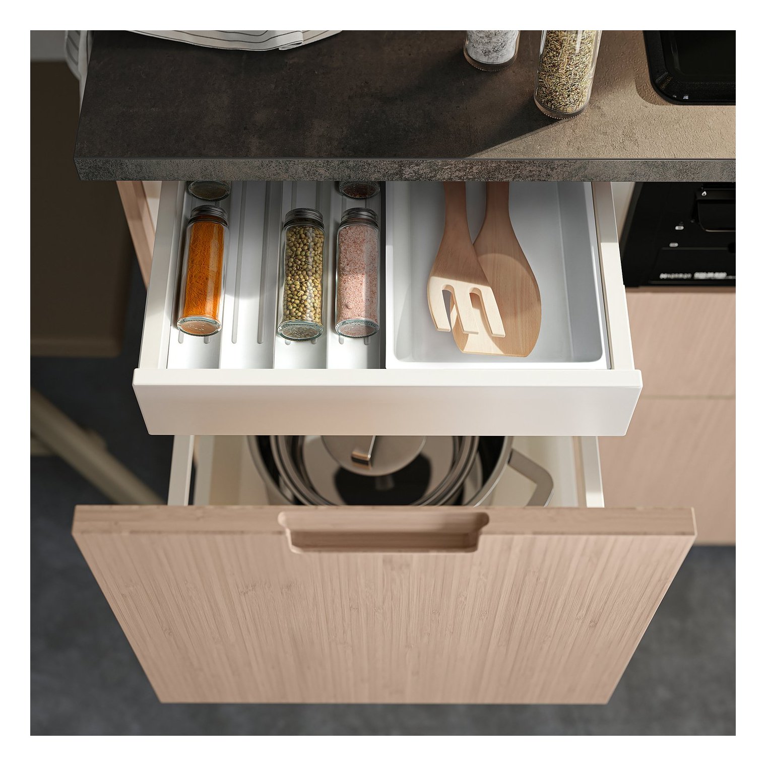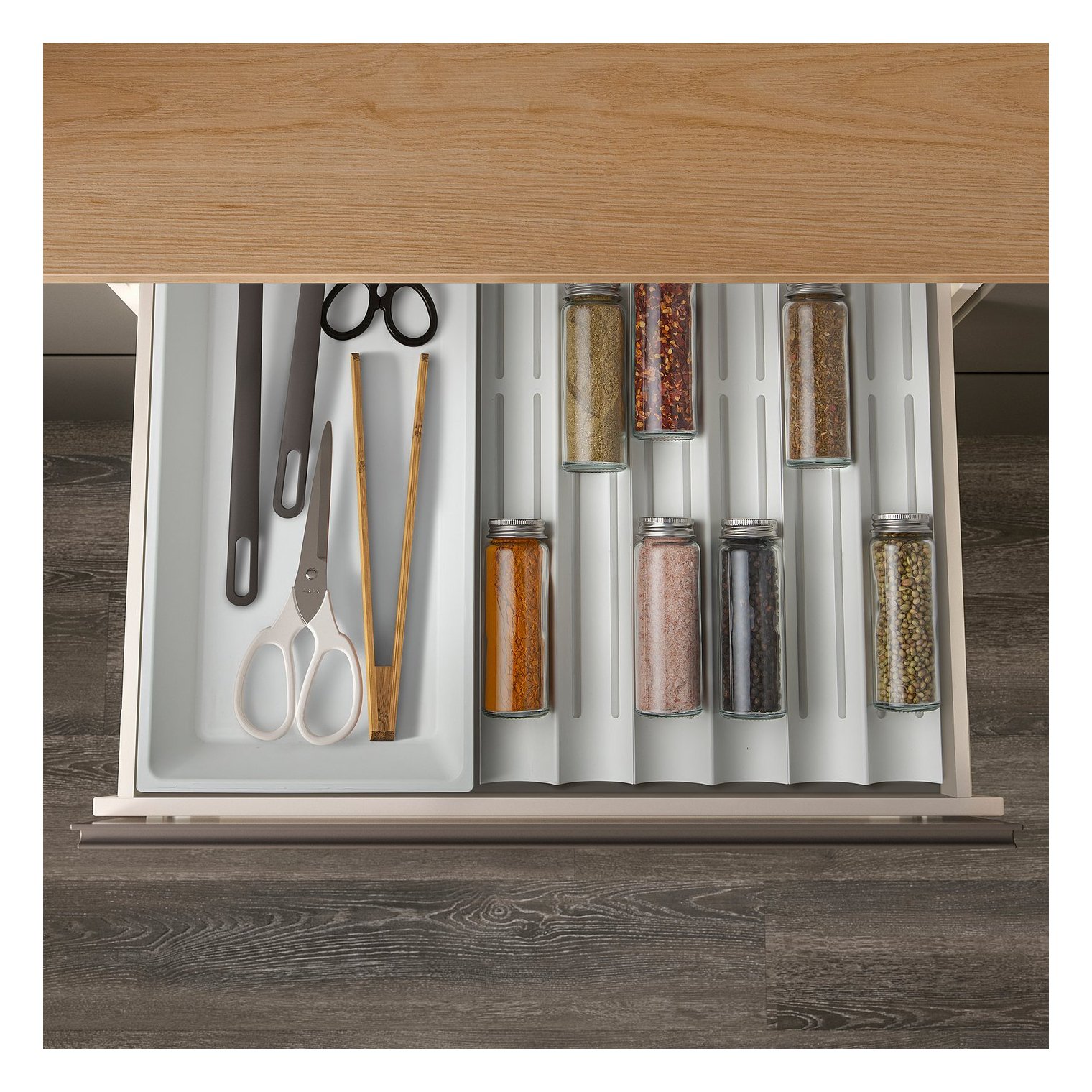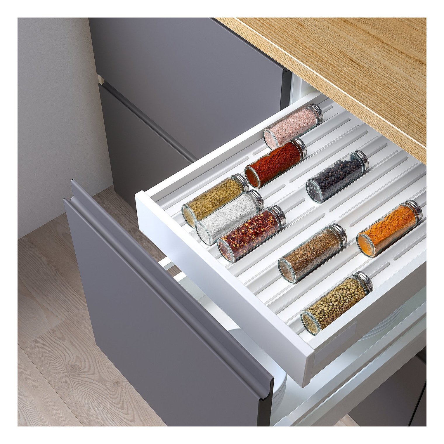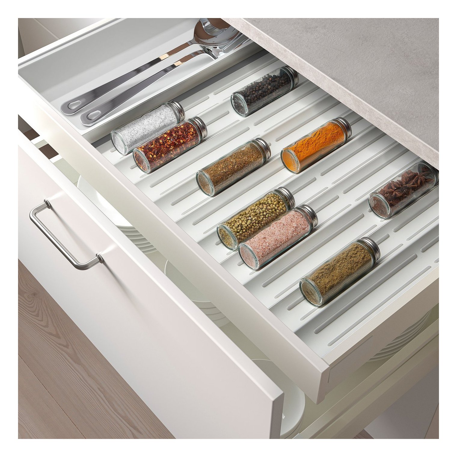 Соедините несколько вставок для специй, чтобы заполнить всю ширину ящика, или используйте их в сочетании с другими органайзерами для ящиков UPDATERA.