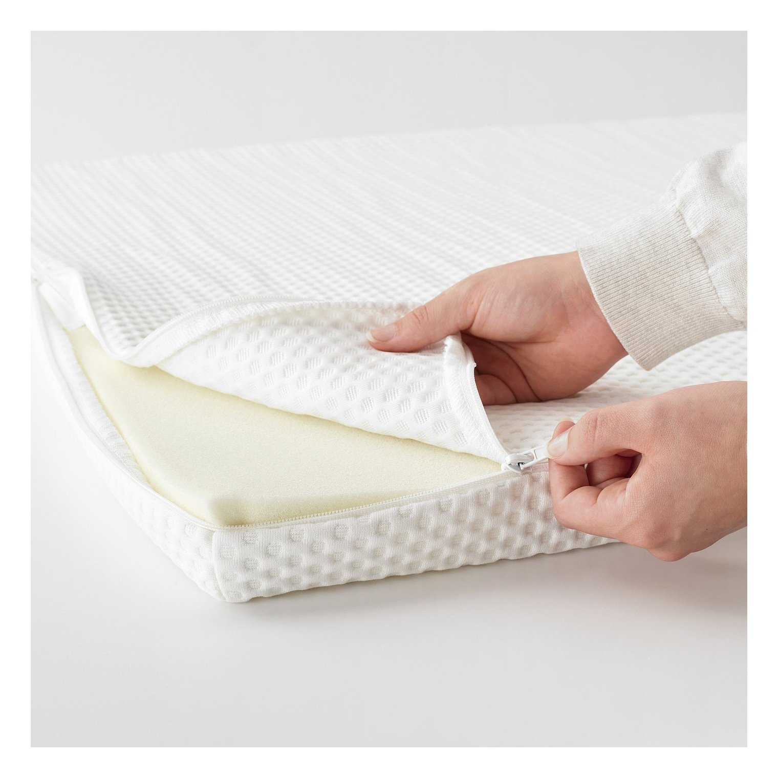 Матрас и наматрасник упакованы в рулон, что облегчает их транспортировку домой.