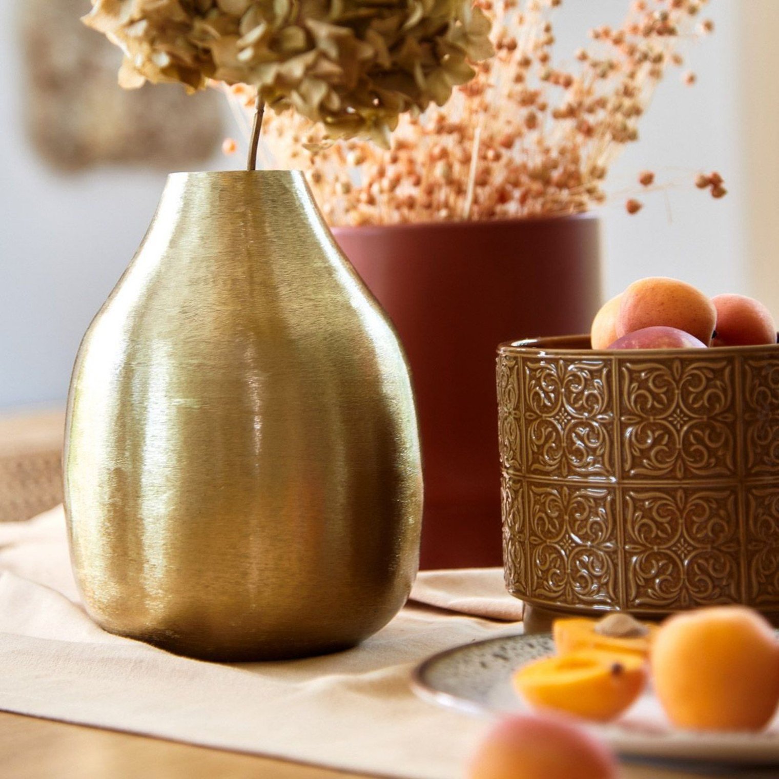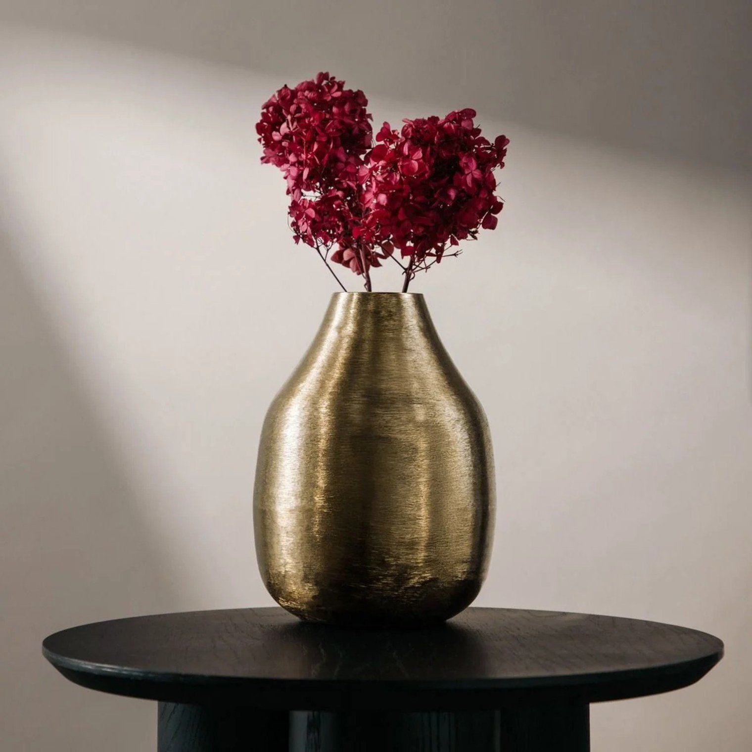 Металлическая ваза HOMLA GIRONA станет прекрасным дополнением к интерьеру любого помещения. Её округлая форма плавно сужается кверху, образуя горлышко, которое объединяет цветы и делает букет ещё более выразительным. Вся ваза отделана золотом, что добавляет ей элегантности и неповторимого стиля.