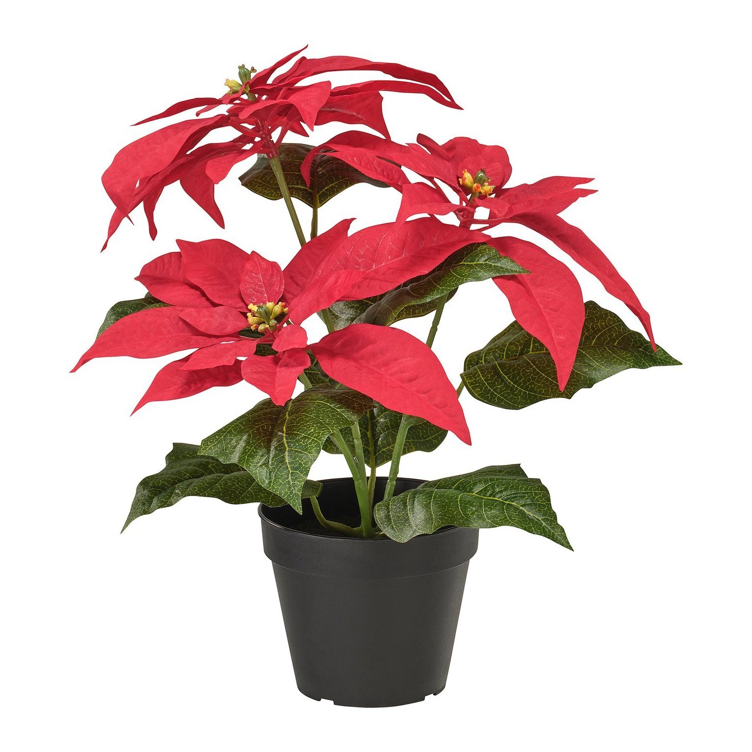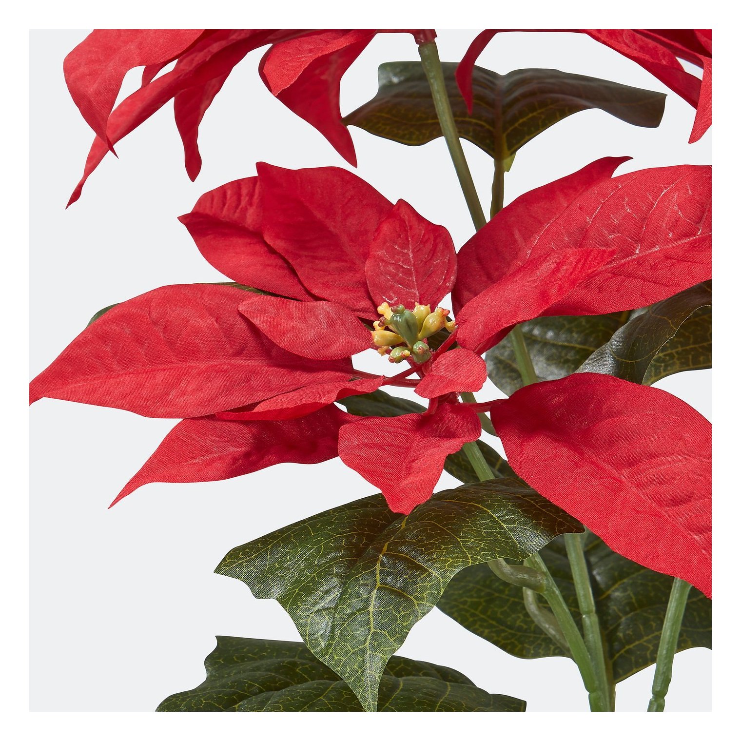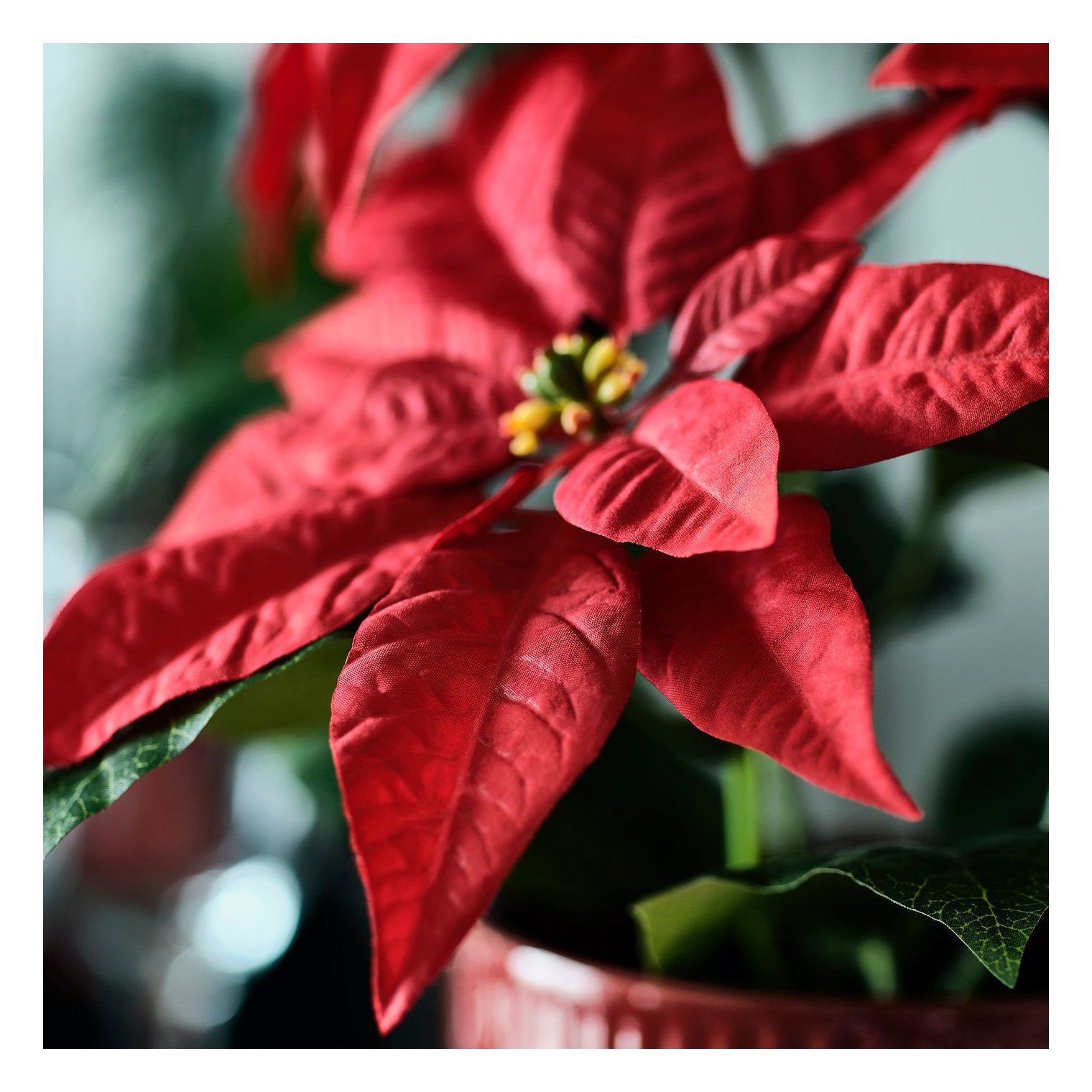 Пышная пуансеттия с красиво цветущими листьями станет идеальным украшением для создания праздничного настроения.