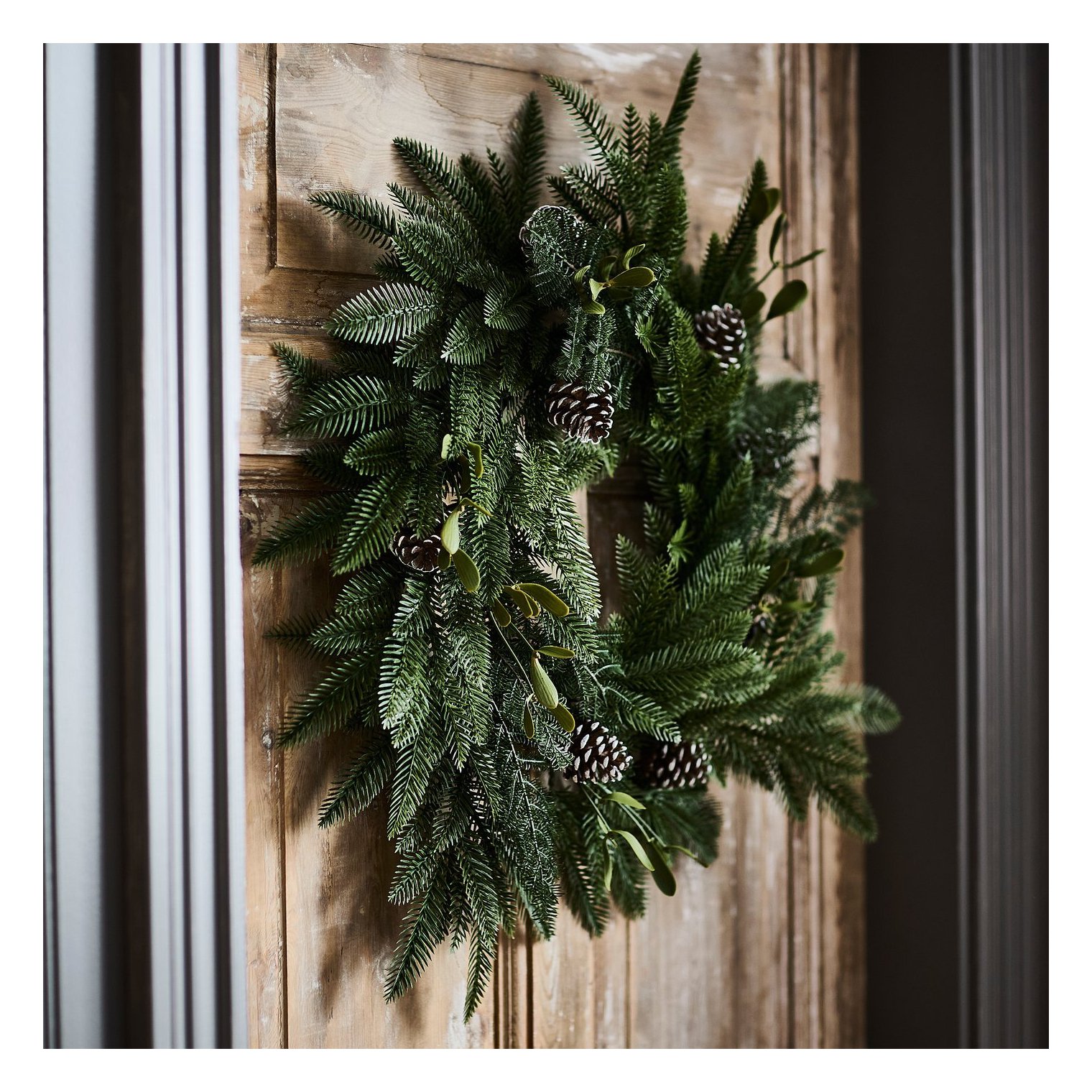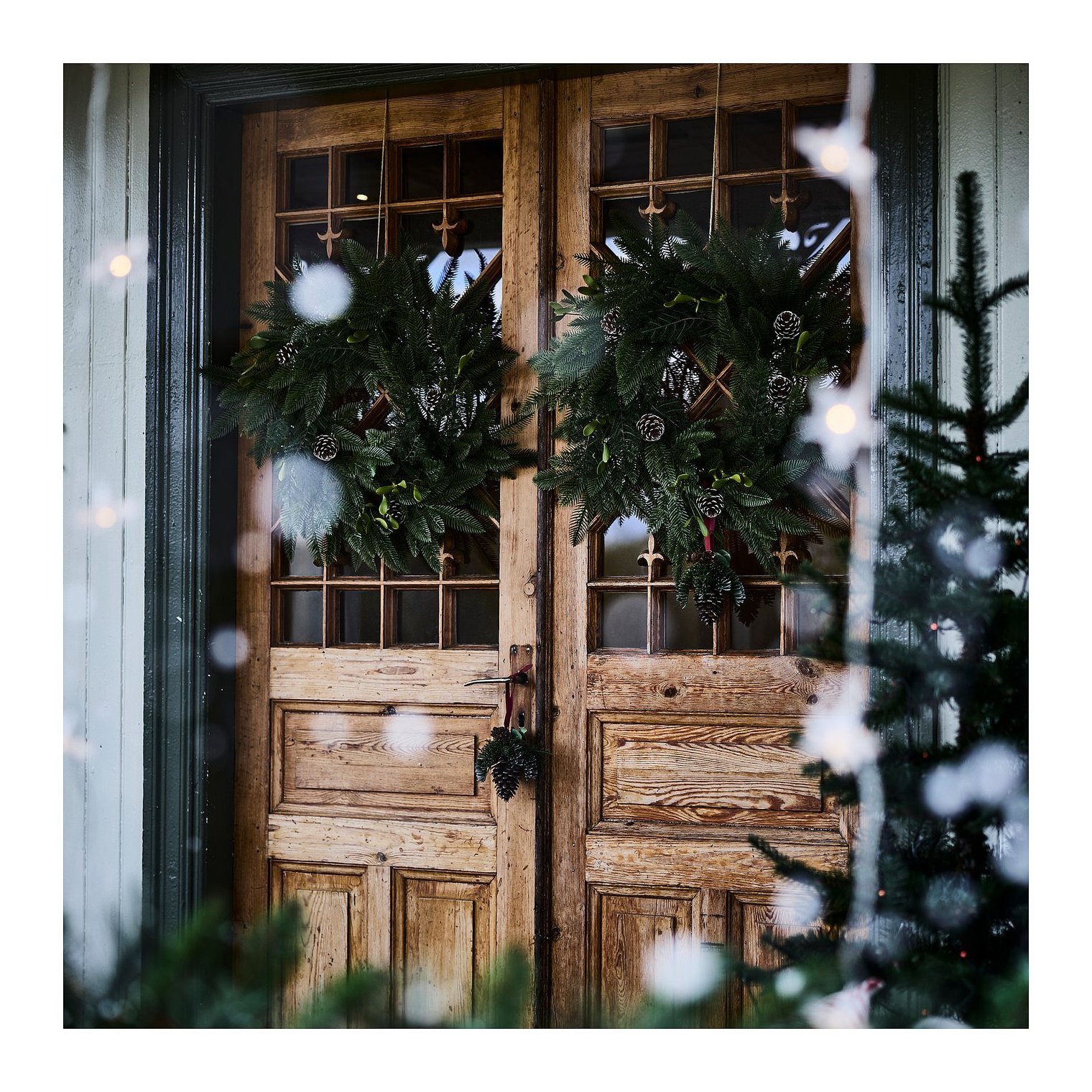 Декоративный венок одинаково красиво смотрится как на стене, так и на дверном проёме, на окне или как украшение стола. Он создаёт прекрасную праздничную атмосферу.