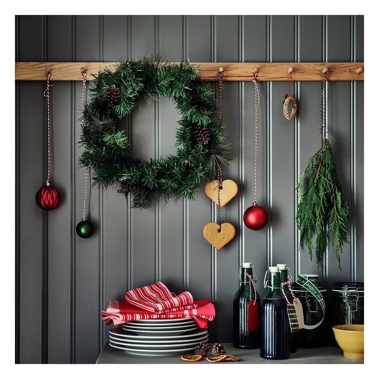 Декоративный венок одинаково красиво смотрится как на стене, так и на дверном проёме, на окне или как украшение стола. Он создаёт прекрасную праздничную атмосферу.