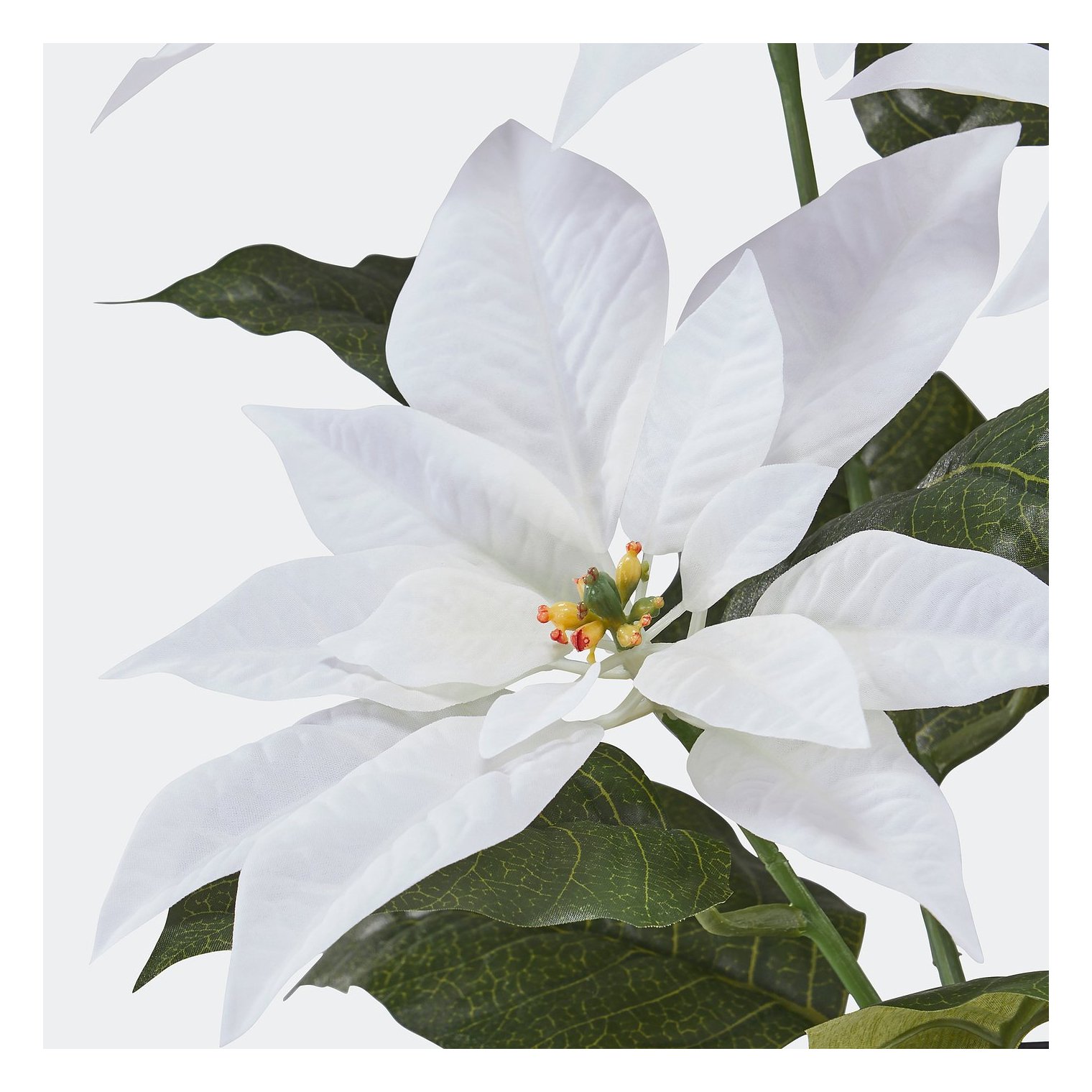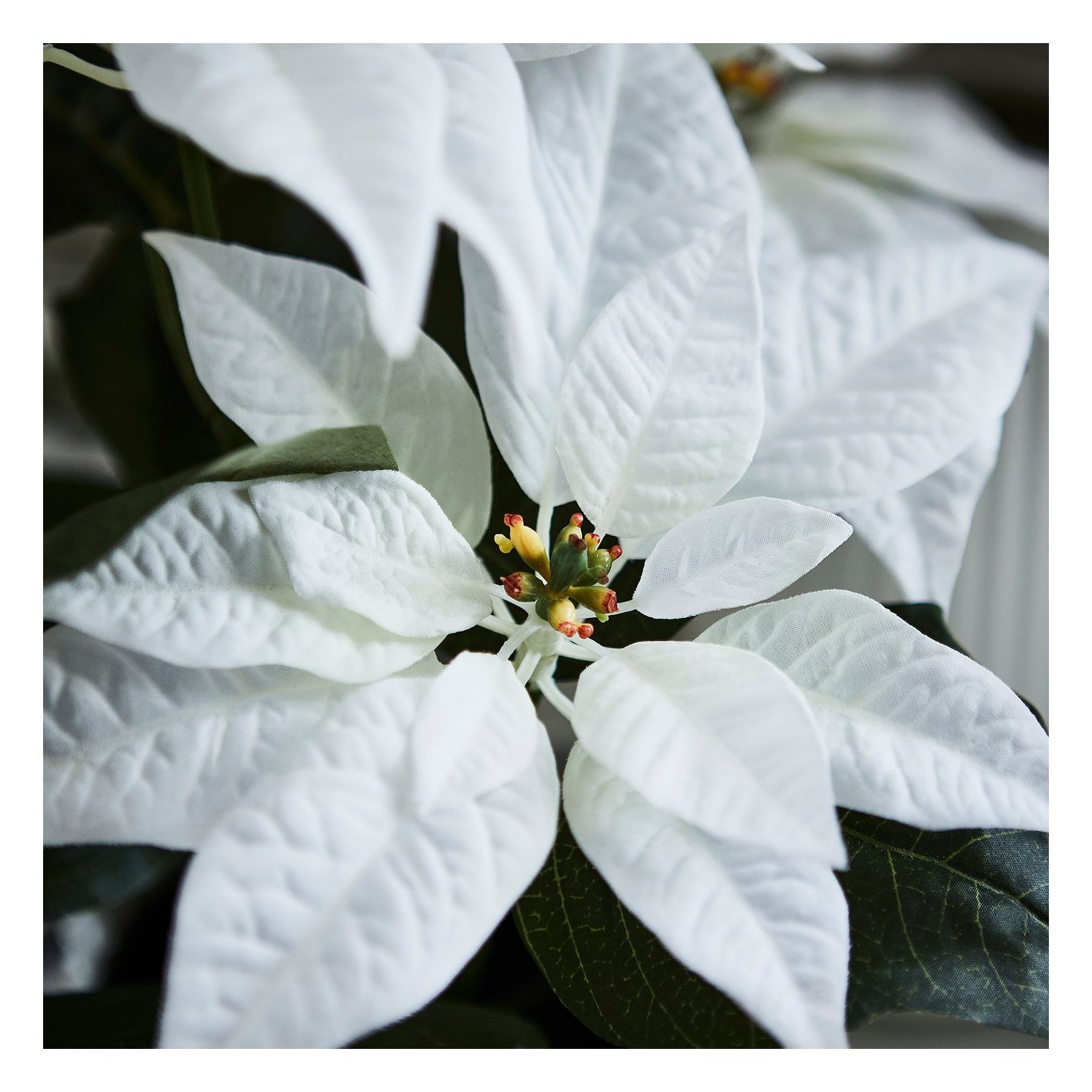Пышная пуансеттия с красиво цветущими листьями станет идеальным украшением для создания праздничного настроения.