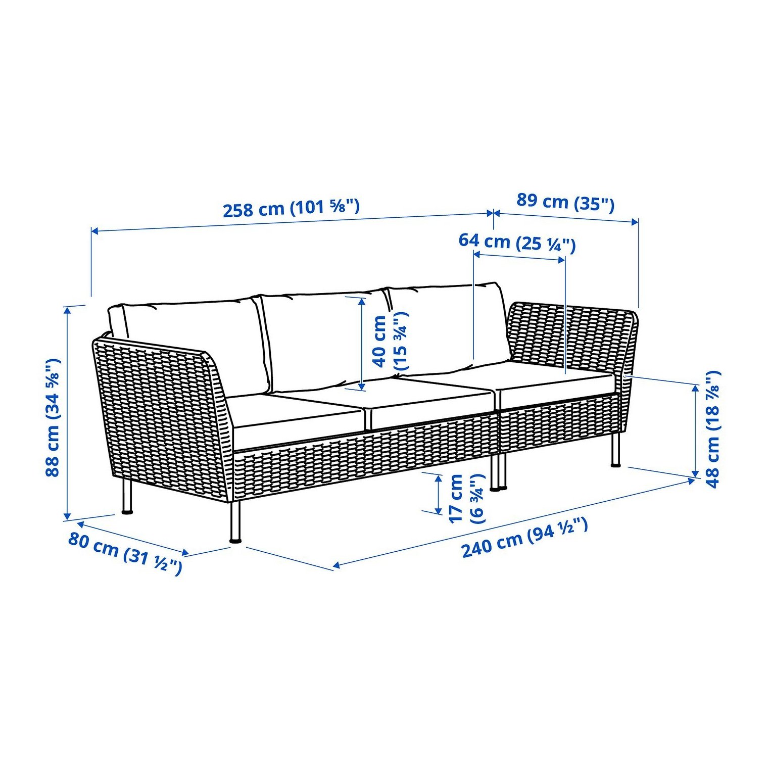Ширина сиденья: 240 см