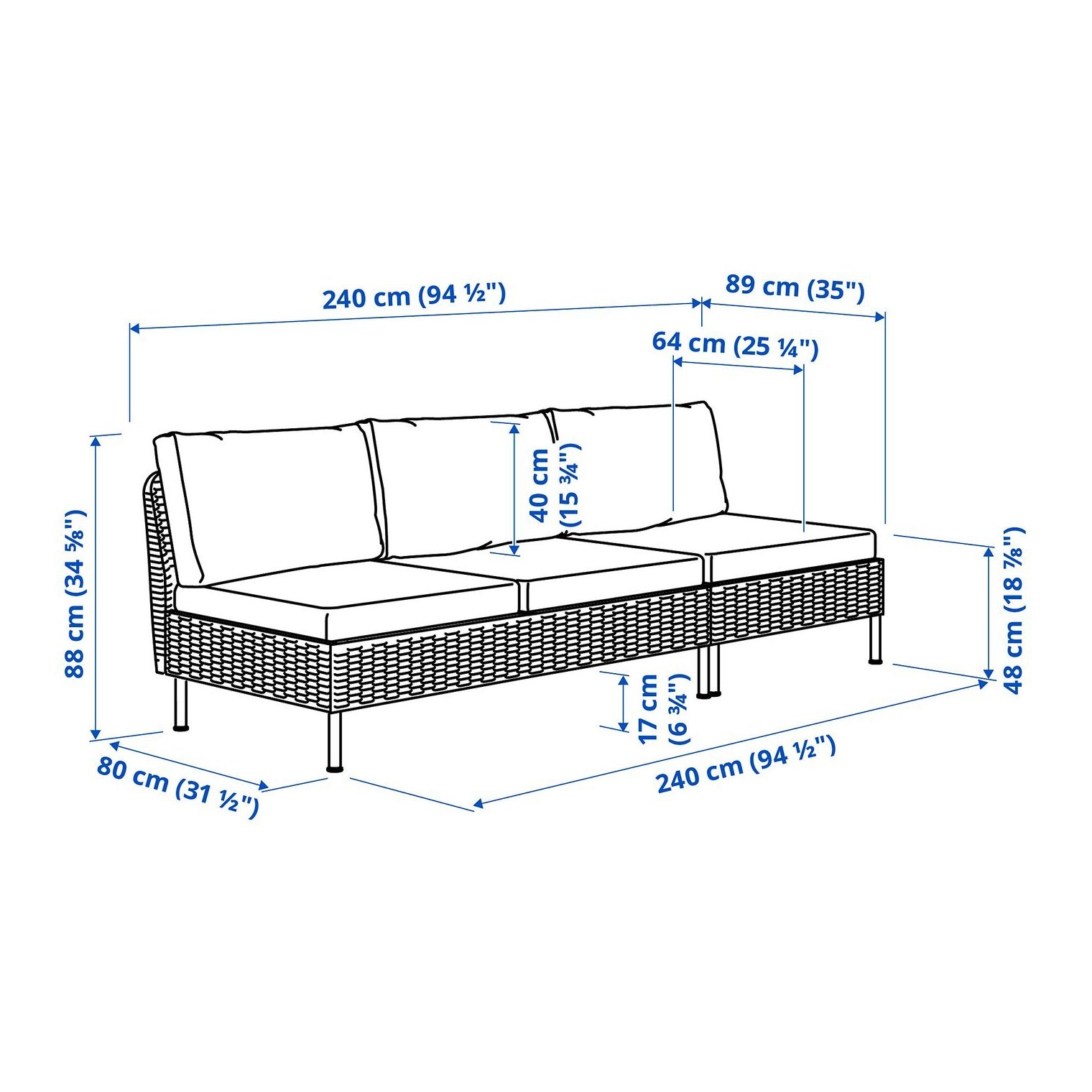 Ширина сиденья: 240 см