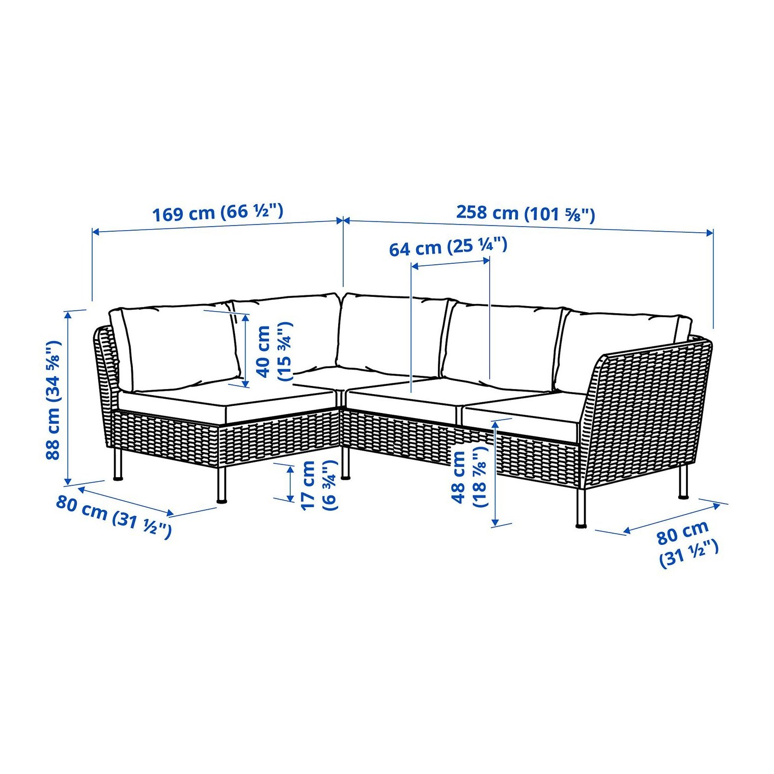 Высота с подушками спинки: 88 см