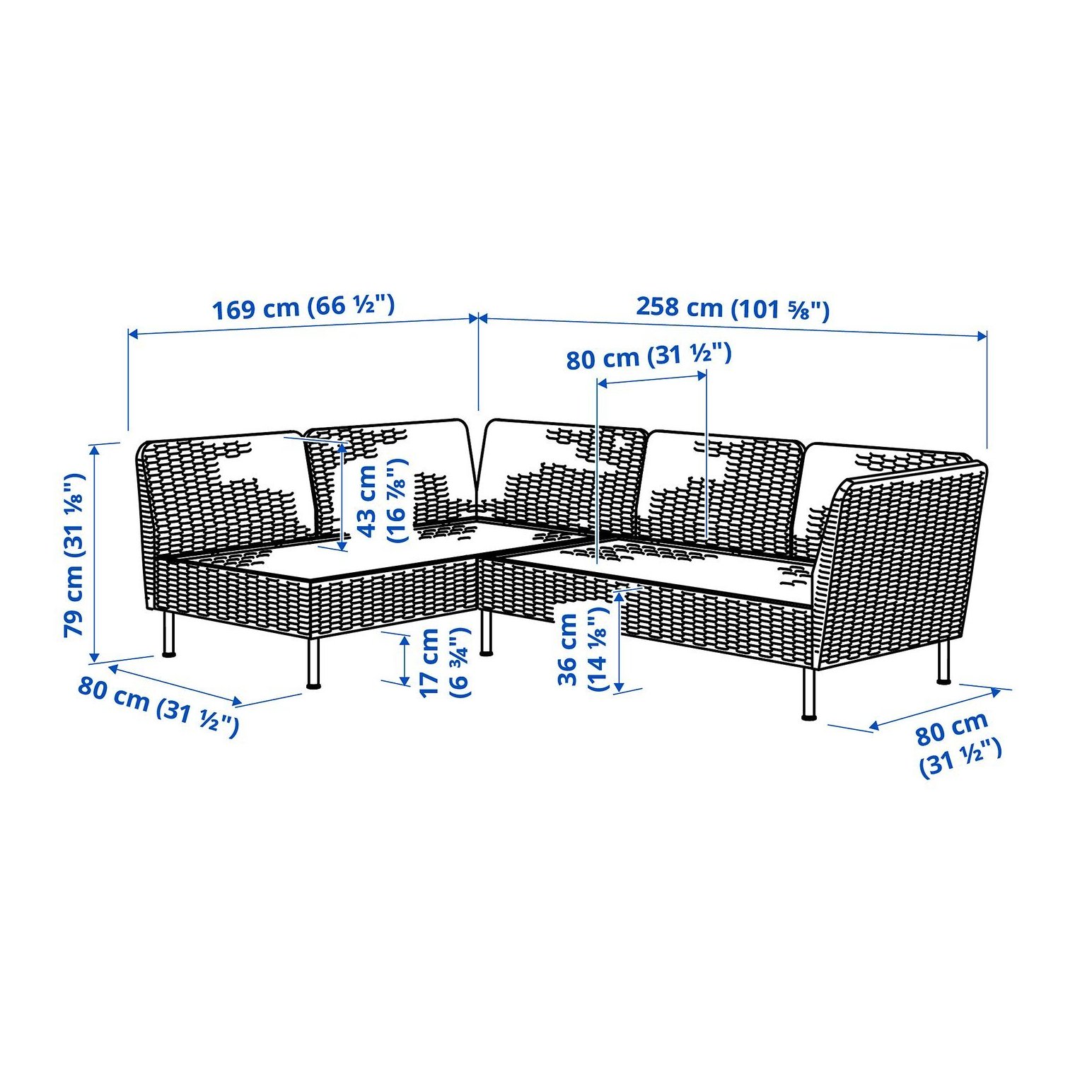 Ширина сиденья с правой стороны: 240 см.
