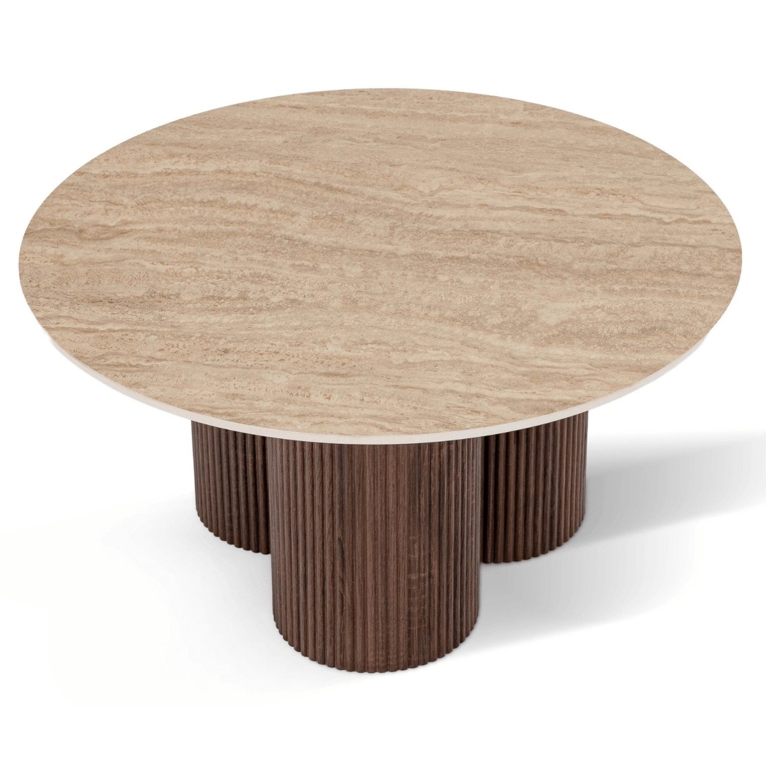 Придайте своему интерьеру современный шик. Кофейный столик Cartagena очаровывает своей изящной столешницей из травертина и характерным рифленым основанием из орехового дерева. Он идеально дополнит интерьеры в стиле модерн, японский стиль и мягкий лофт.