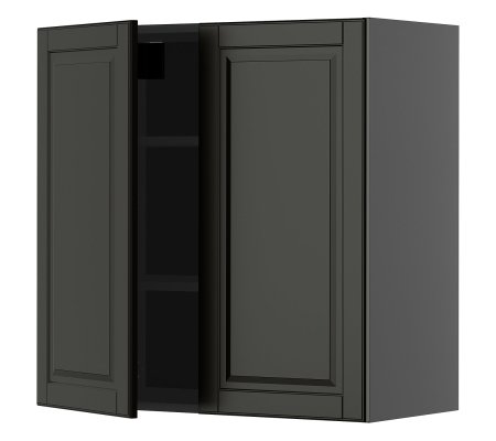Навісна шафа з полицями/2 двері, чорно-сірий/Bodbyn чорний, 80x80 смОчікуємо у постачальника