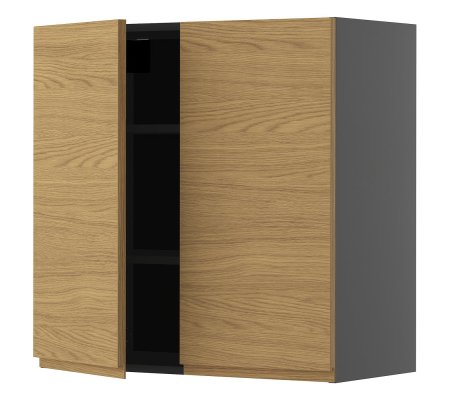 Навісна шафа з полицями/2 дверцята, чорно-сірий/під дуб Voxtorp, 80x80 смОчікуємо у постачальника