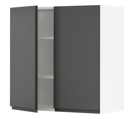 6 208грнНавісна шафа з полицями/2 дверцята, біла/Воксторп темно-сірий, 80х80 смНа замовлення