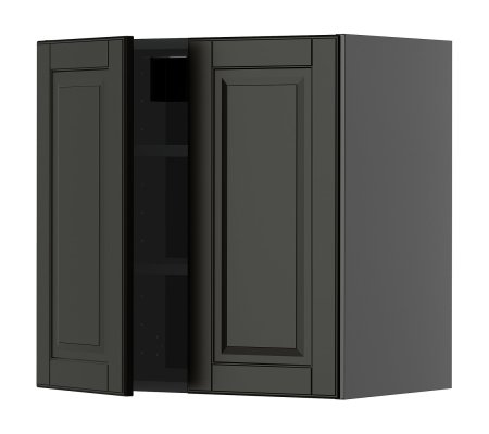 Навісна шафа з полицями/2 двері, чорно-сірий/Bodbyn чорна, 60x60 смОчікуємо у постачальника