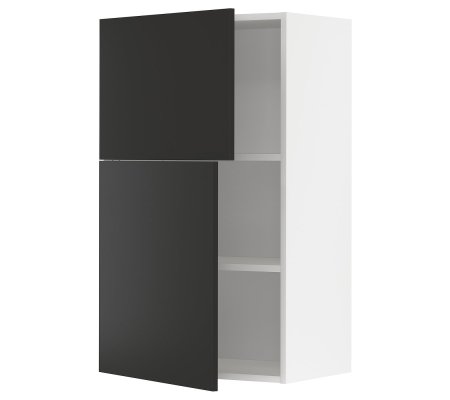 6 655грнНавісна шафа з полицями/2 дверцята, білий/Nickebo матовий антрацит, 60x100 смНа замовлення