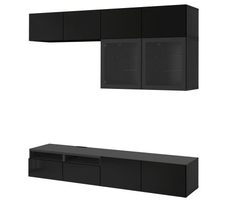 44 919грнКомбінація ТВ/скло дверцята, чорно-коричневий/Сельсвікен глянцевий/чорне прозоре скло, 240х42х231 смНа замовлення