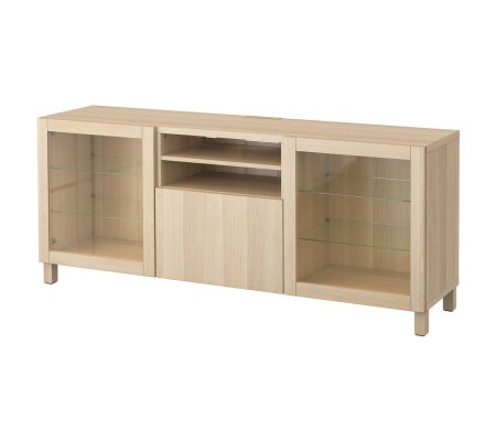 Тумба під телевізор, дуб вибілений/Лаппвікен/Стуббарп дуб вибілений, прозоре скло, 180x42x48 смнемає в наявності