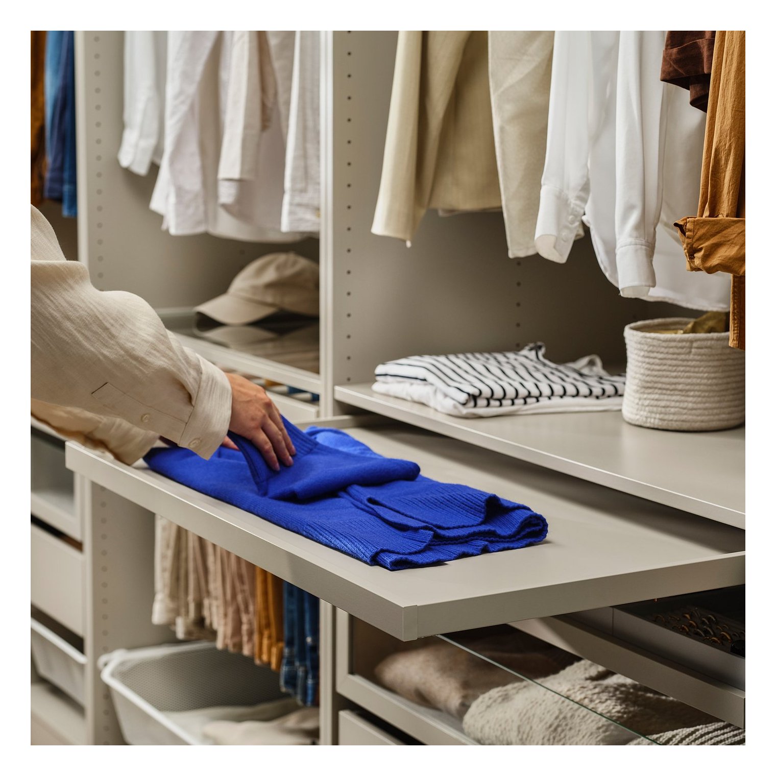 Хороше рішення для зберігання легкого одягу, наприклад, футболок. У комплекті з килимком для ящика КОМПЛІМЕНТ з повстяною поверхнею, що запобігає ковзанню предметів.
