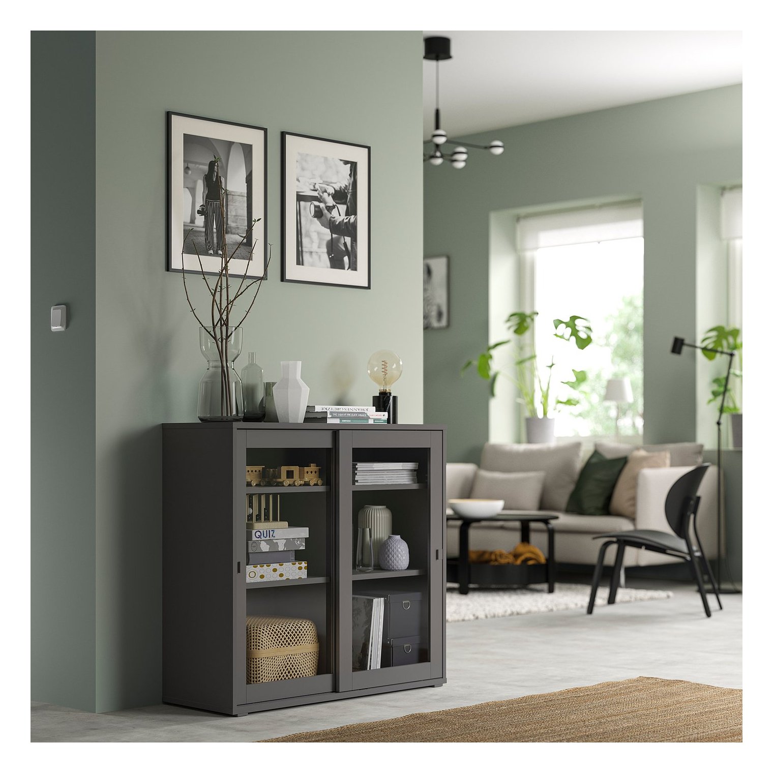Скляні дверцята не дозволять предметам припадати пилом і при цьому залишаться видимими.