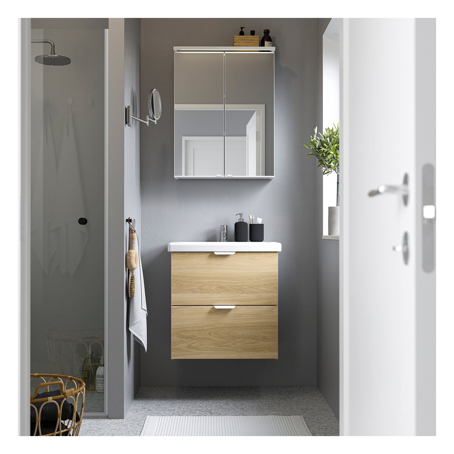 Дзеркальна шафа дозволяє розміщувати дрібні предмети на рівні очей, щоб їх можна було легко знайти в ранок пік. Lystro також змушує кімнату здаватися більше.