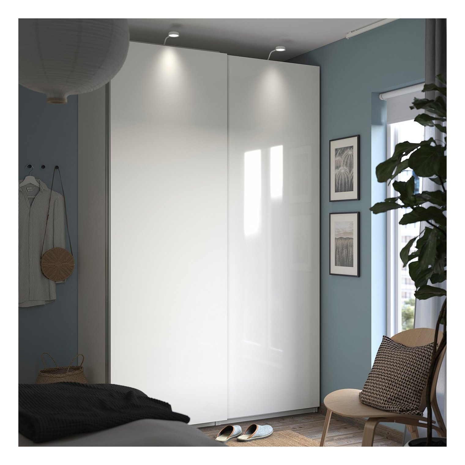 Ці двері HASVIK мають глянсове біле оздоблення. Вони також доступні в матовому білому кольорі та різних оздобленнях під дерево.