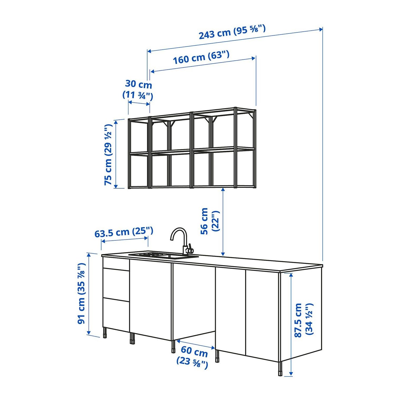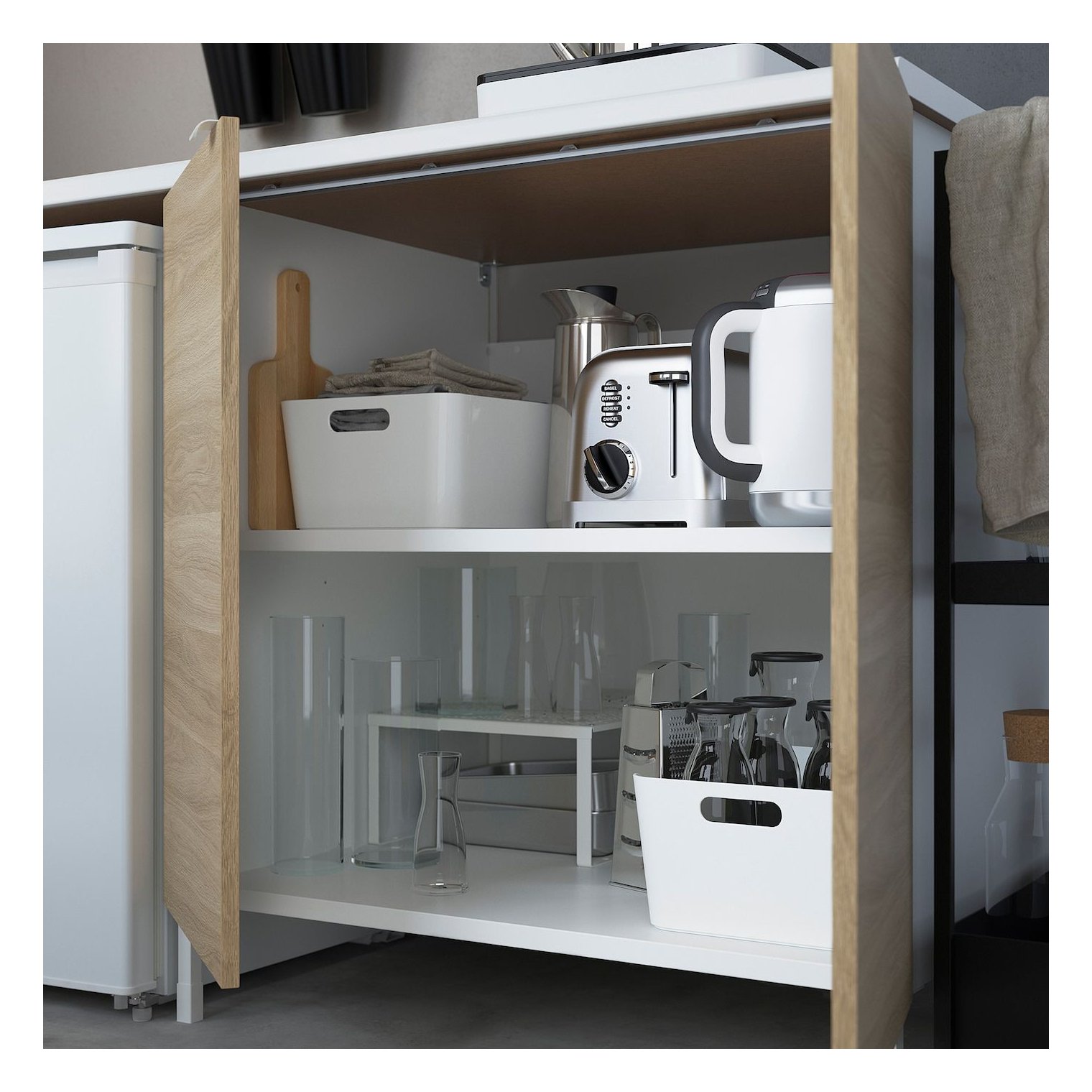 Вставка для підвісної полиці ENHET дозволяє створити місце для зберігання речей між полицями у відкритих шафах ENHET. Ідеально підходить для організації таких речей, як чашки та банки для еспресо.
