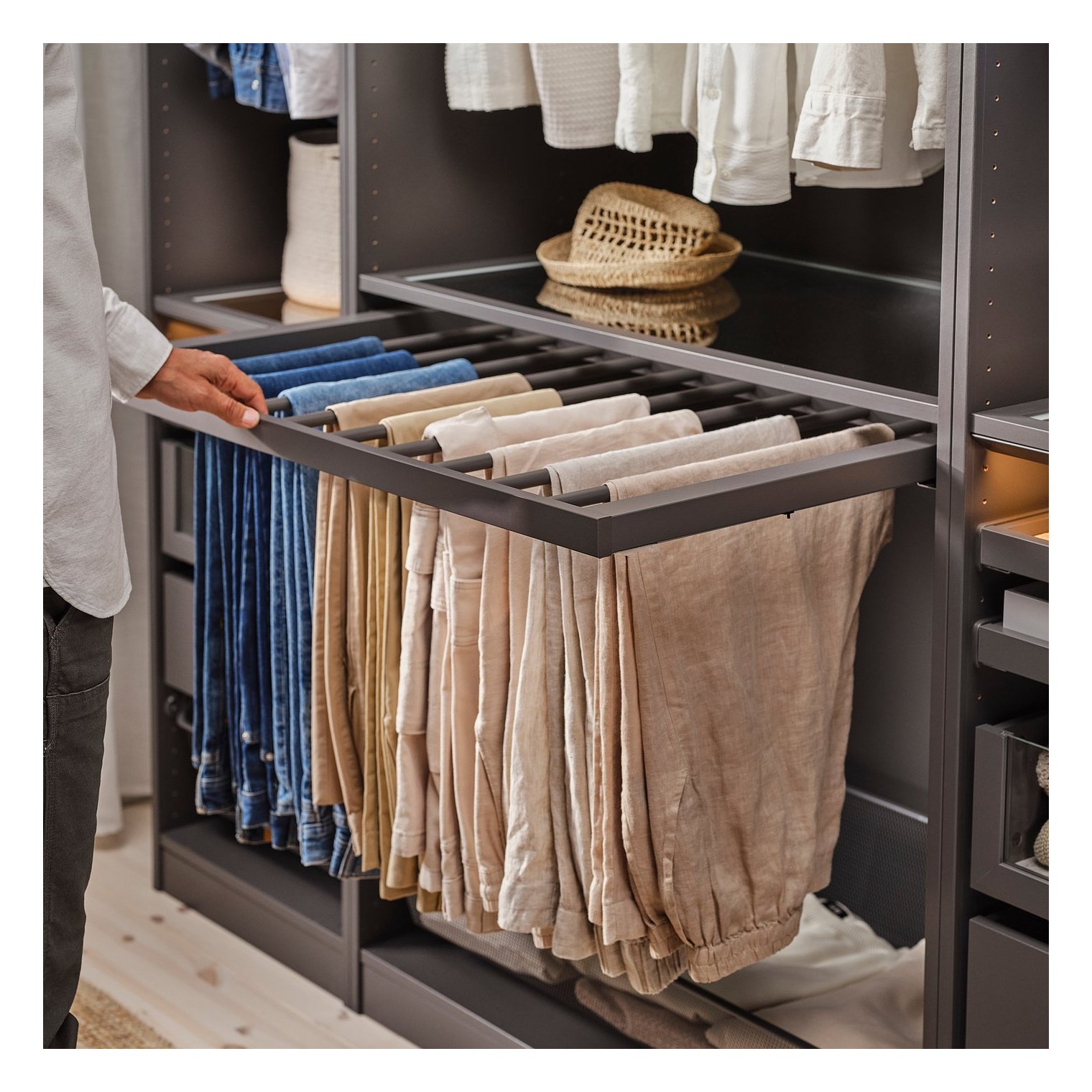 Ви можете легко побачити і дістати свої штани, тому що вішалка для штанів висувається.