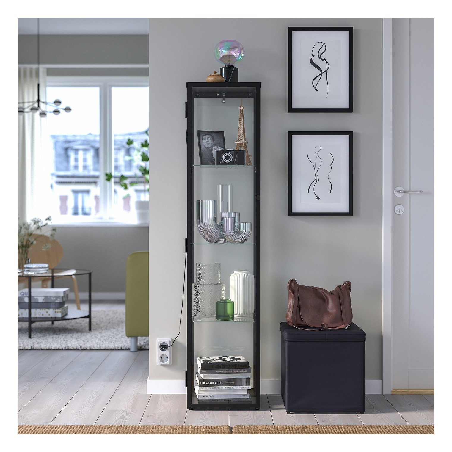 Скляні полиці дозволяють світлу поширюватися по всій шафі.