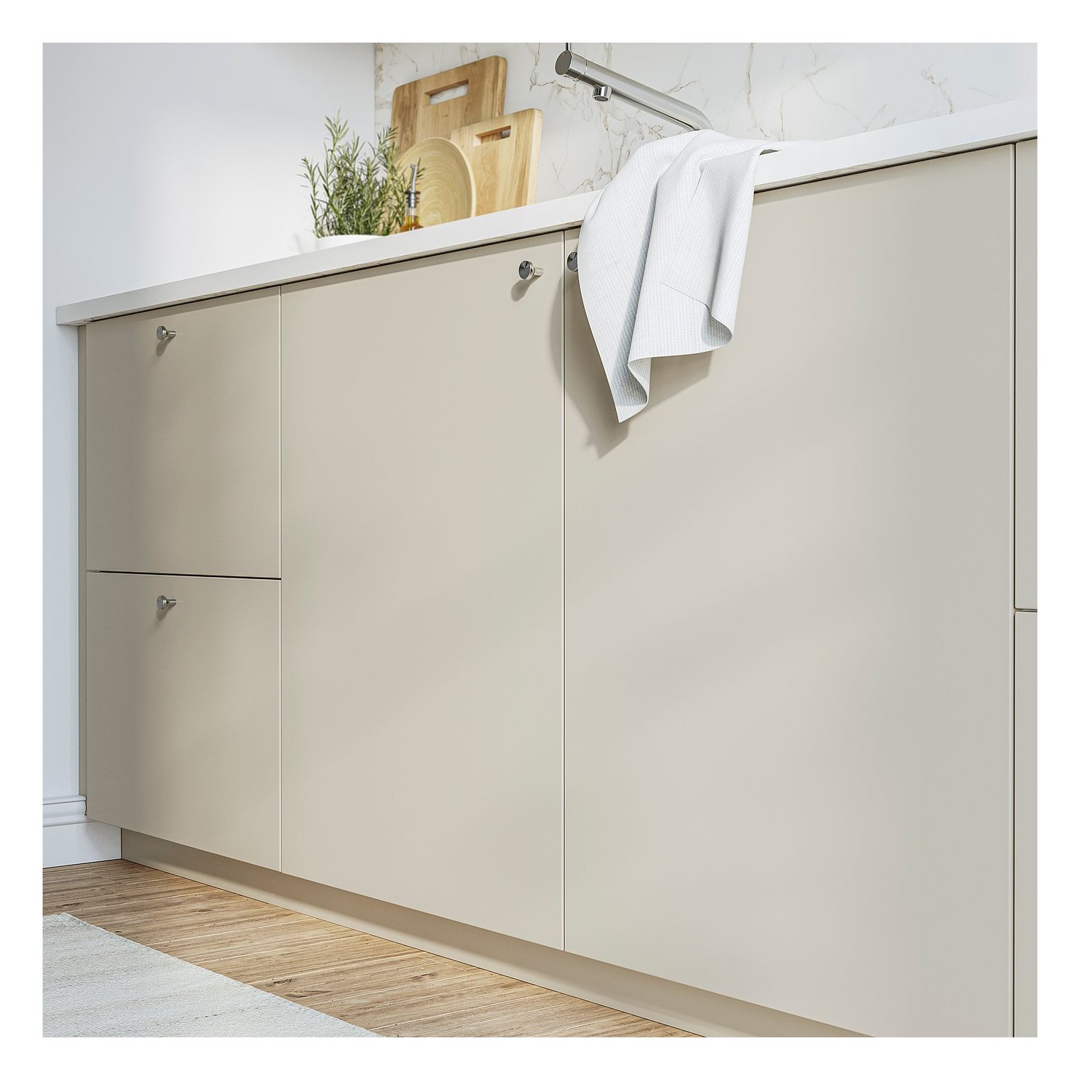 Можна доповнити малярськими панелями ХАВСТОРП, цоколем і декоративними бежевими планками.