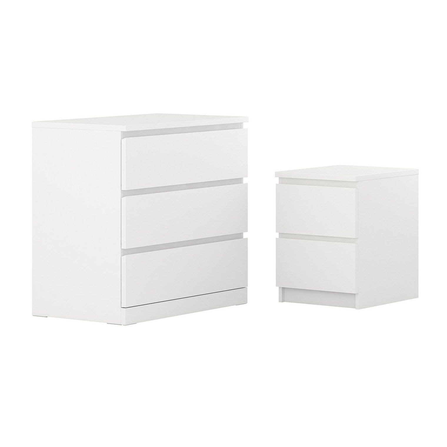 В комплект входять: 1 тумбочка та 1 комод з 3 ящиками.